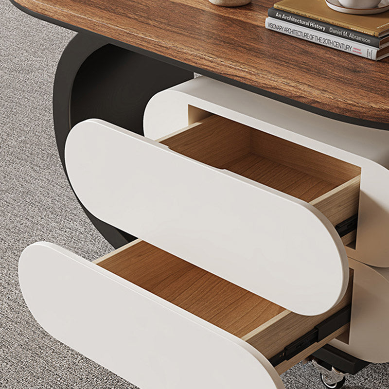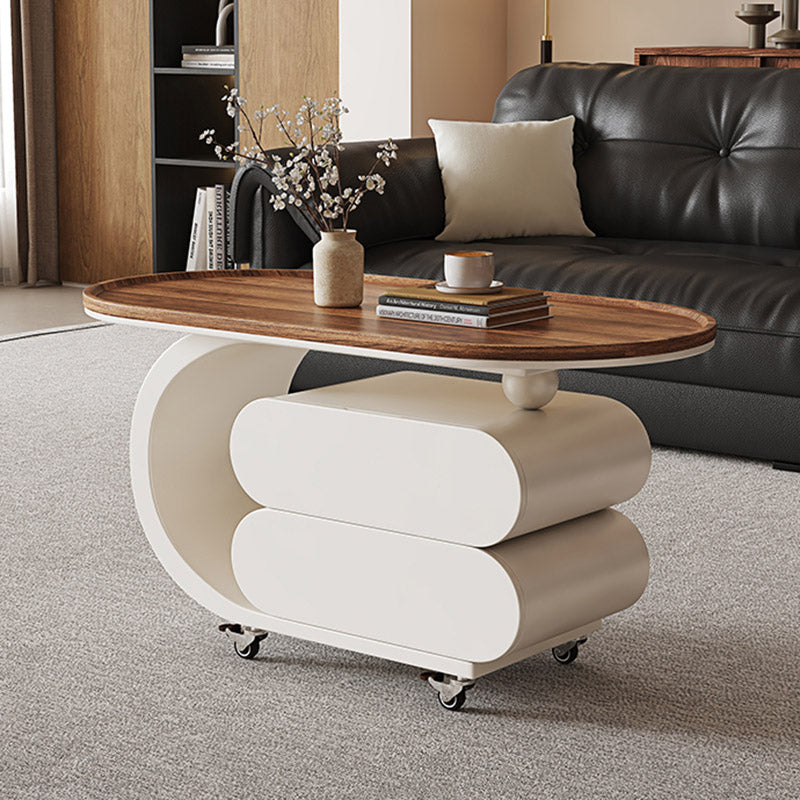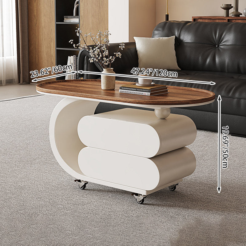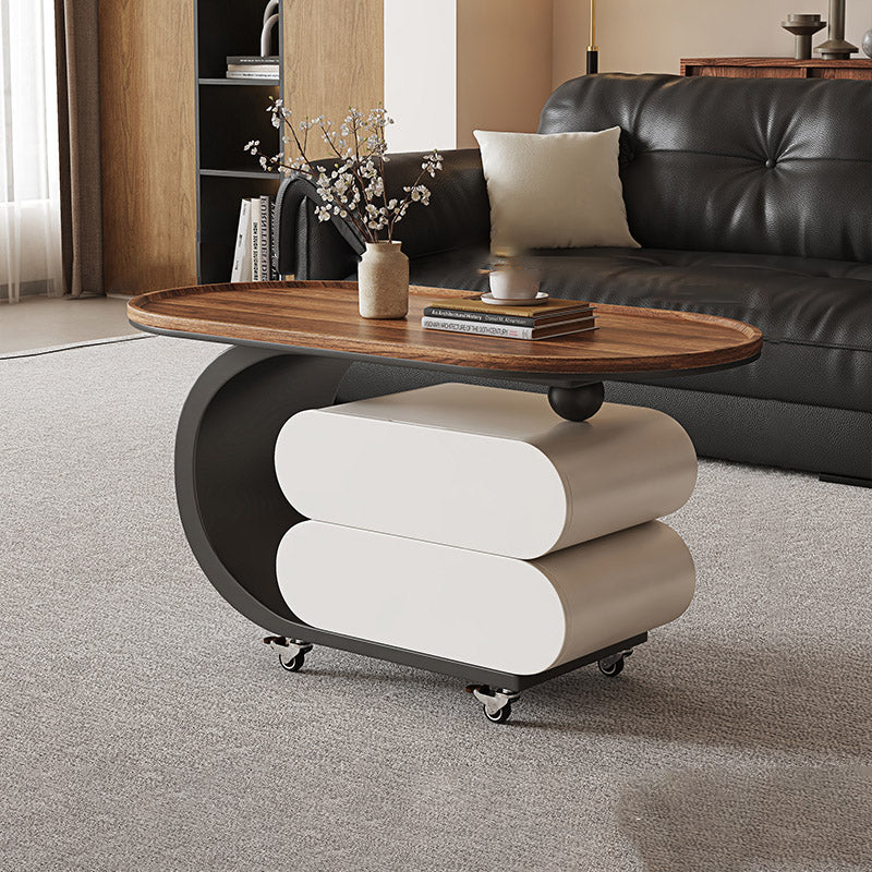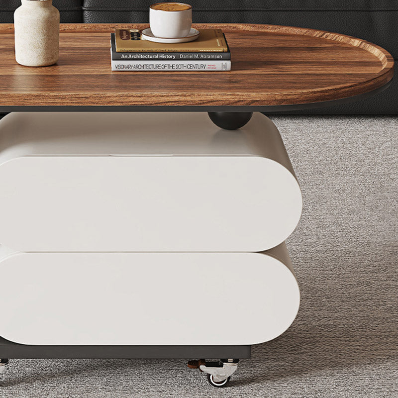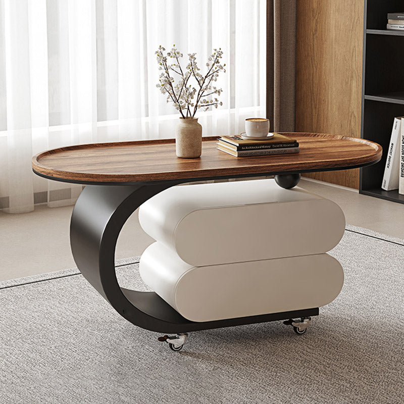 Elevate your living room with this modern minimalist oval coffee table, crafted from solid wood, MDF, and a carbon steel base. Featuring 2 drawers and a movable design, it’s perfect for small spaces and comes in black, white, or walnut to match any décor.