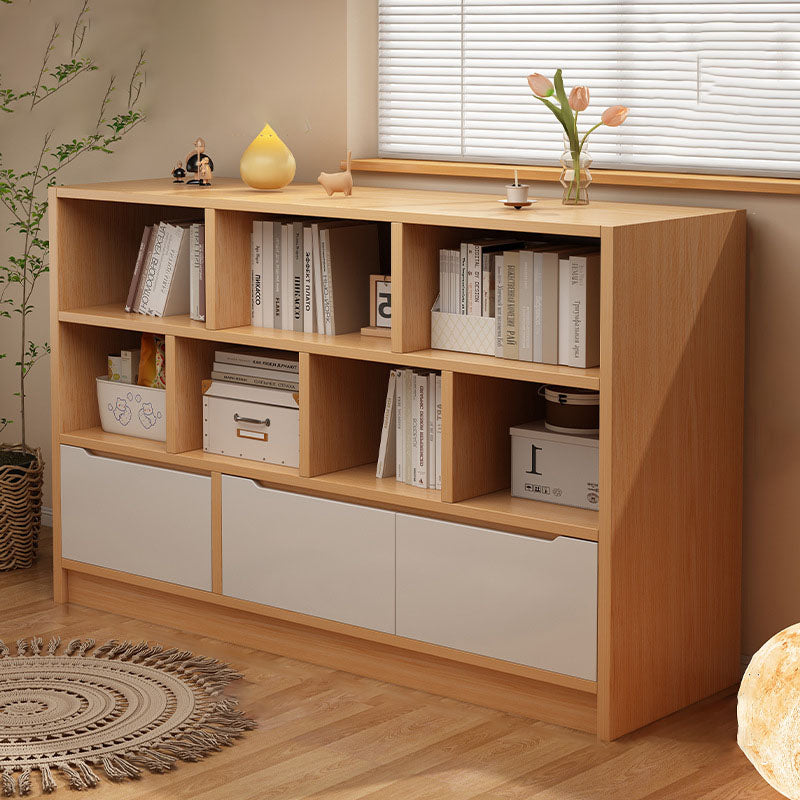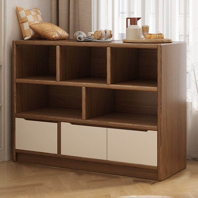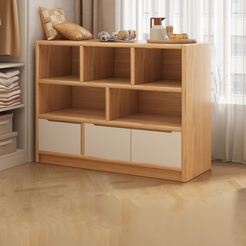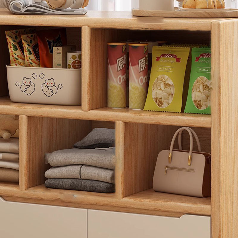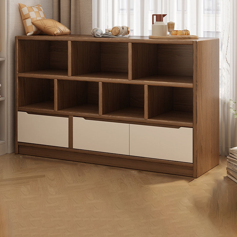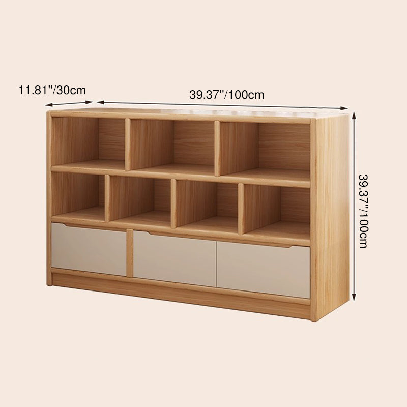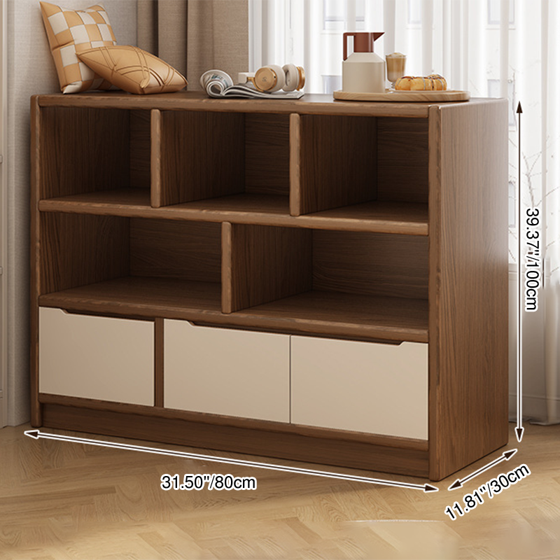 This rectangular storage cabinet is made from solid wood eco board, offering 3 cabinet units with 5 or 7 spacious storage compartments for efficient organization. Finished in walnut or natural wood tones, it provides large-capacity storage with a clean modern minimalist design, ideal for living rooms, offices, or wall-side storage in contemporary spaces.