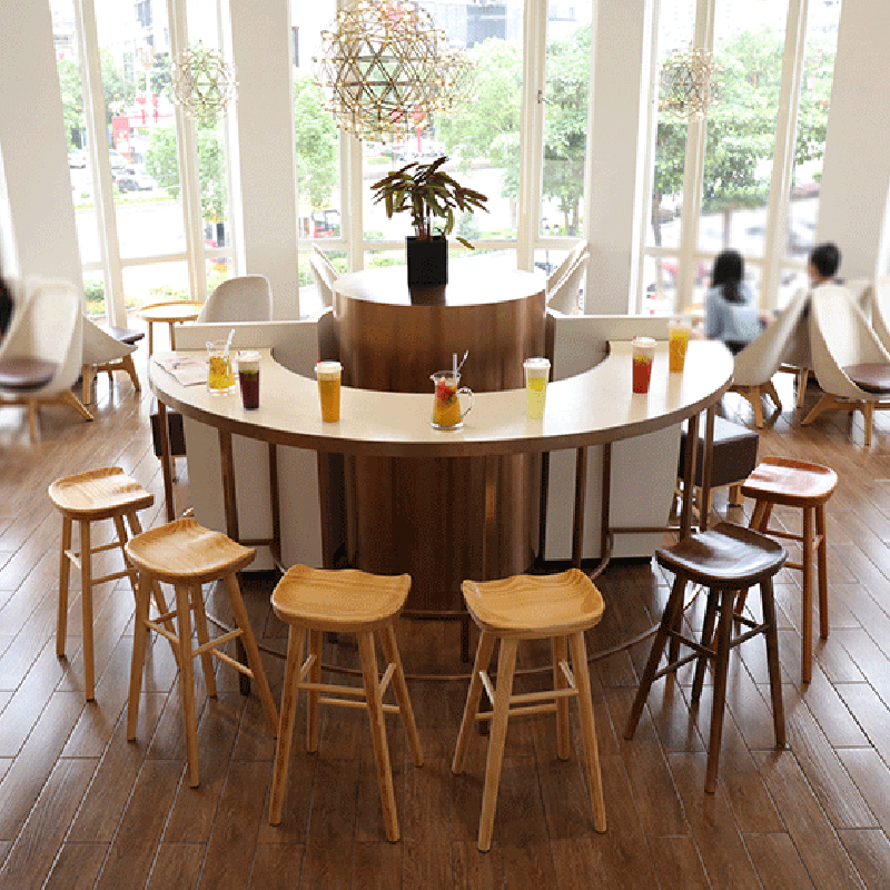 Available in Coffee Brown, Walnut Brown, Natural Wood, Teak Brown, Black, and White, it’s a versatile wooden bar stool for dining rooms, cafés, and home bars, blending comfort with clean Nordic-inspired design.
