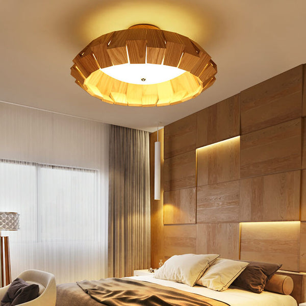 Modern Wooden Southeast Asian Style LED Flush Mount Light