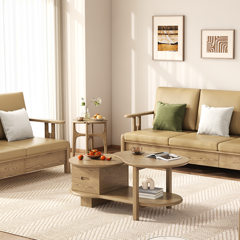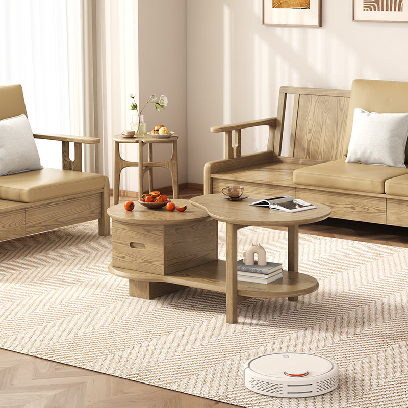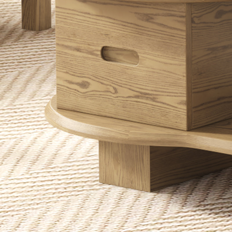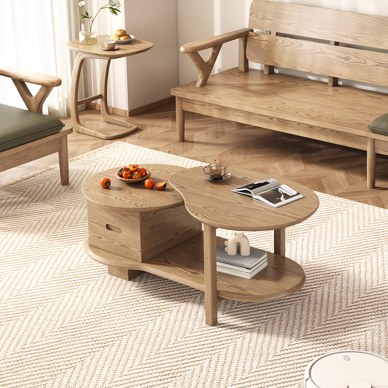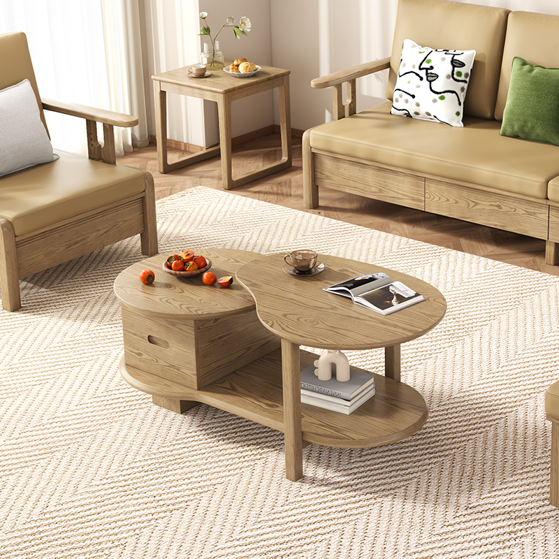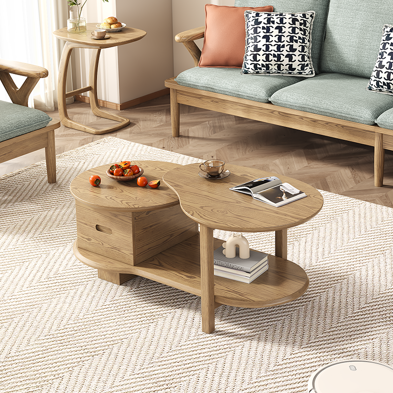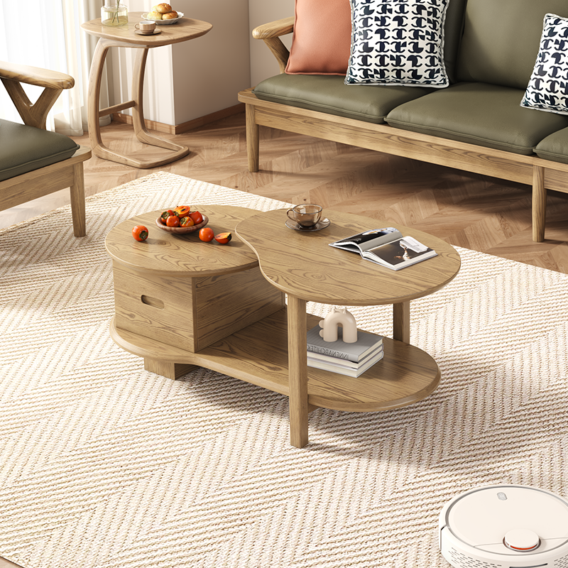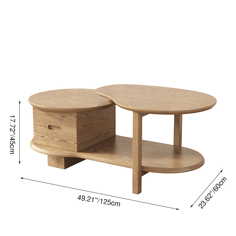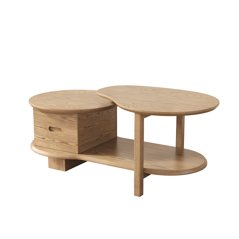 Contemporary creative design meets imported North American ash wood in this geometric staggered-layer coffee table, an artistic storage highlight for your living room. Hard, eco-friendly ash wood with clear grain and four sturdy legs ensures durability. A drawer with invisible slides offers convenient storage. Blending solid wood warmth and geometric artistry, it suits various living spaces---organizing neatly while adding an artistic touch.