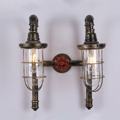 Retro Industrial Wrought Iron Water Pipe Round Glass Shade 2-Light Wall Sconce Lamp
