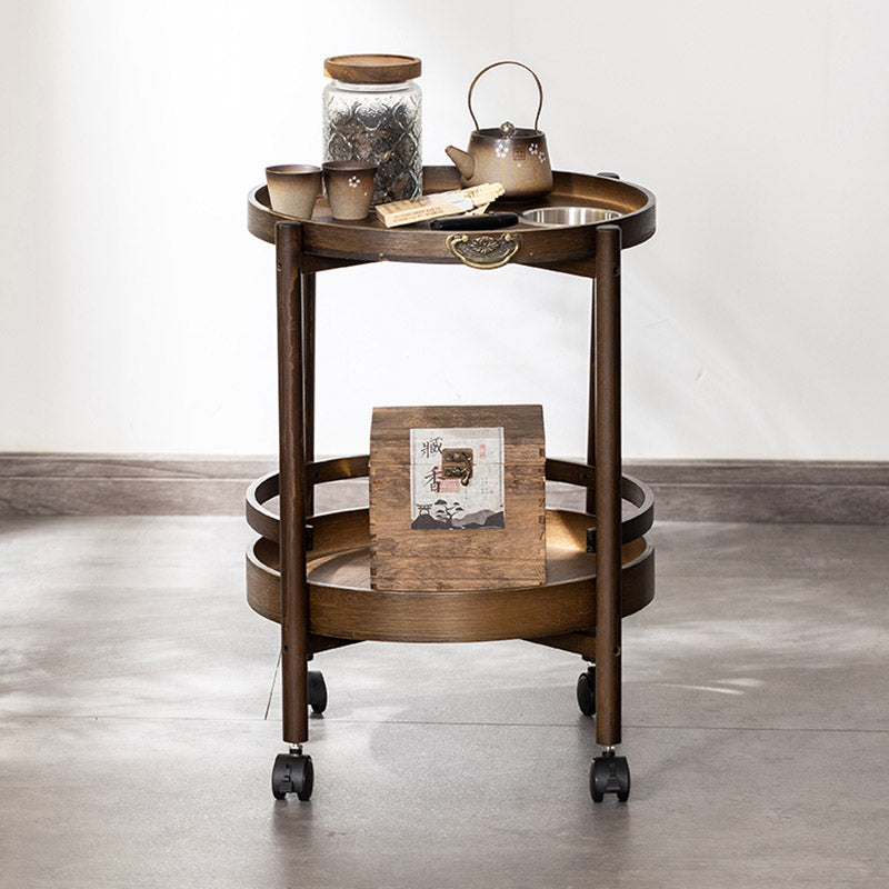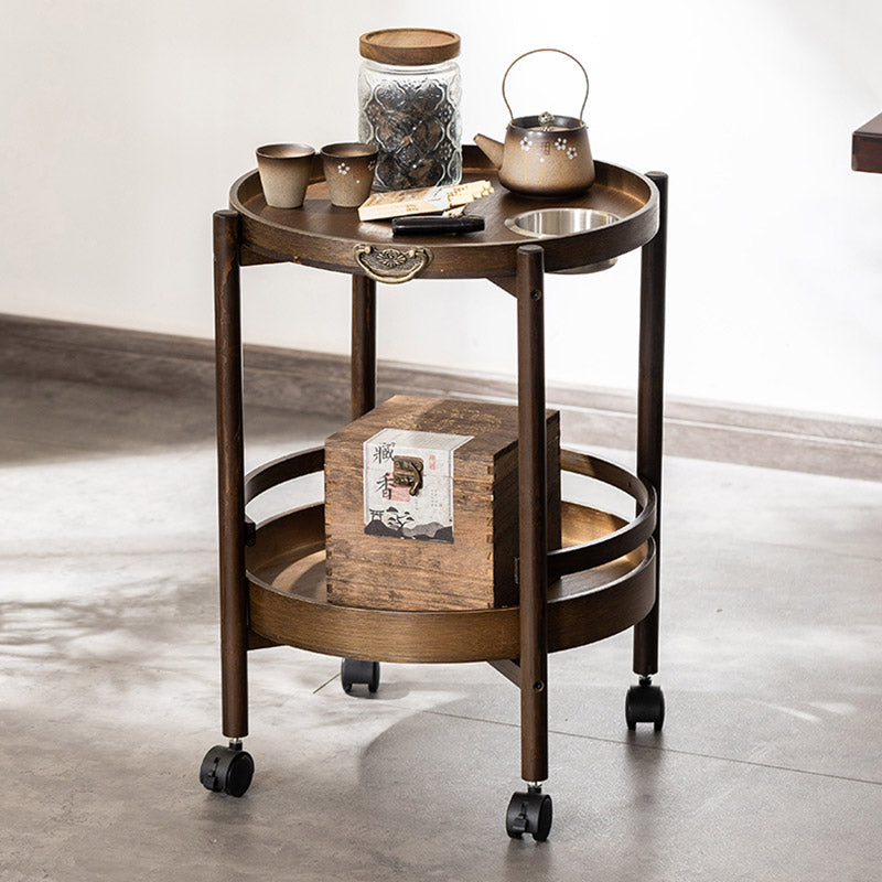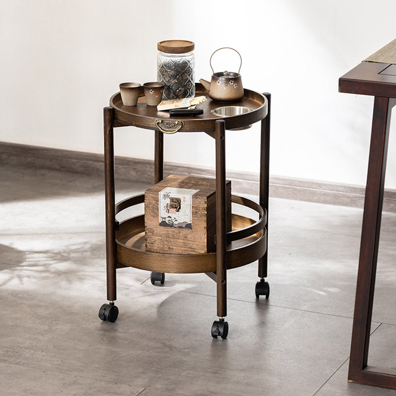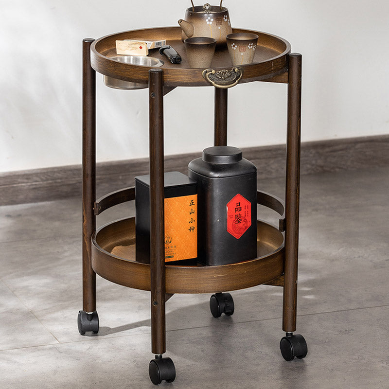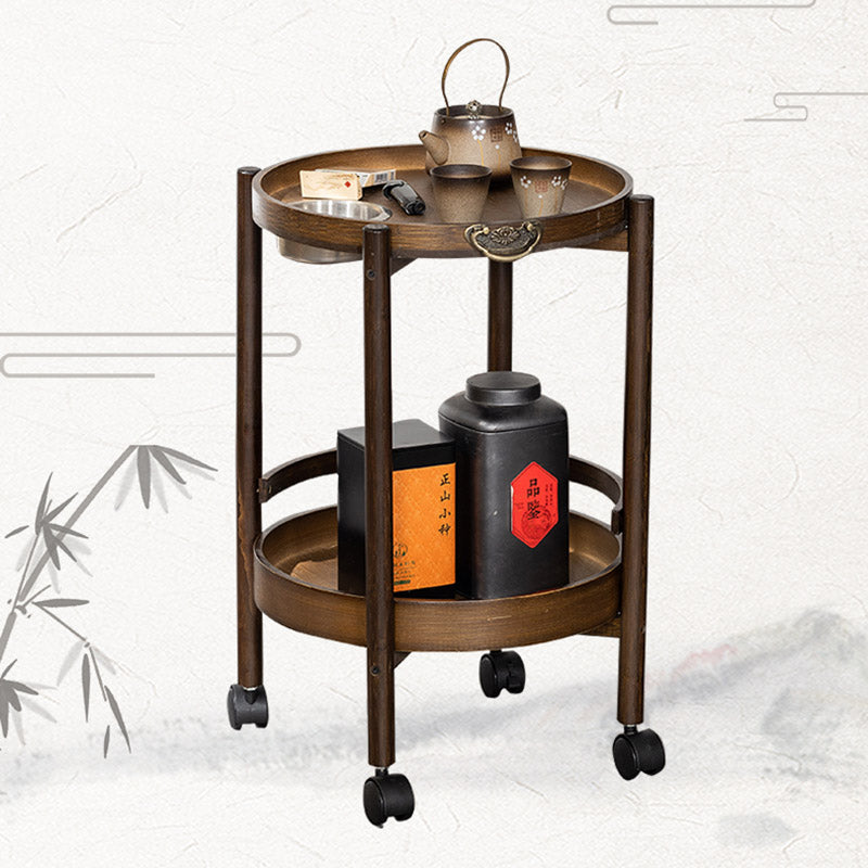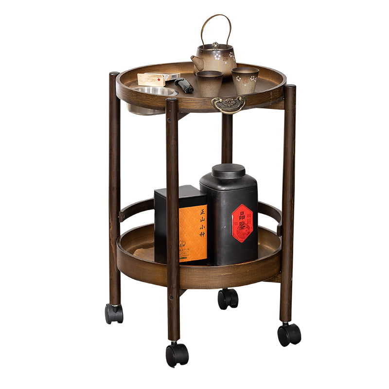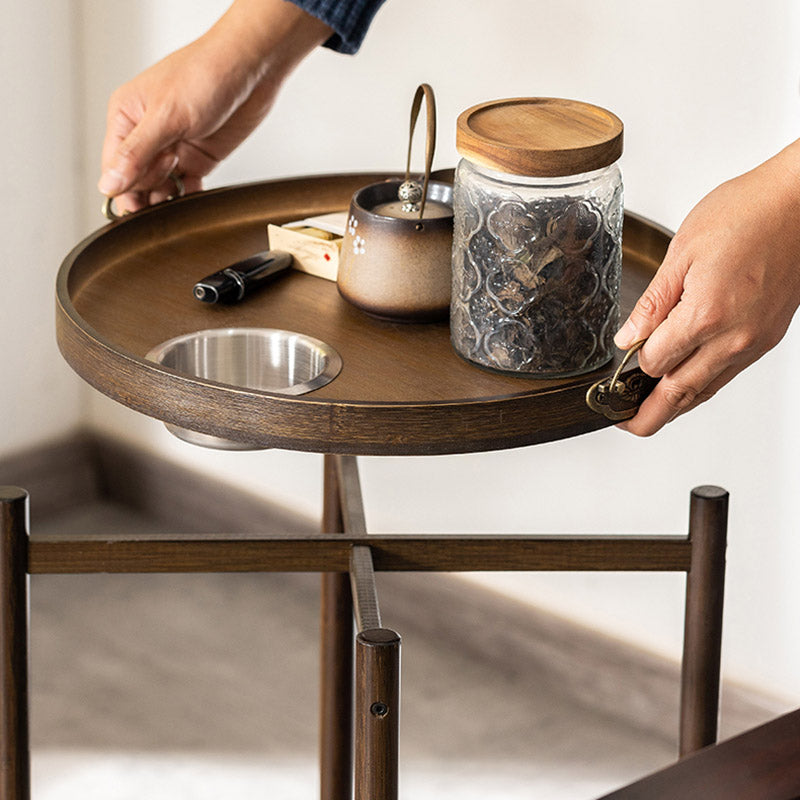 This traditional Chinese–style bamboo side table features a built-in ashtray, removable tabletop, two-tier storage, and smooth-rolling mobility, making it ideal for tea service, mahjong games, or casual gatherings.