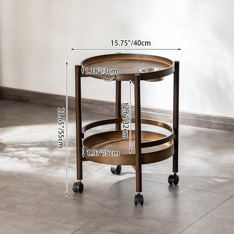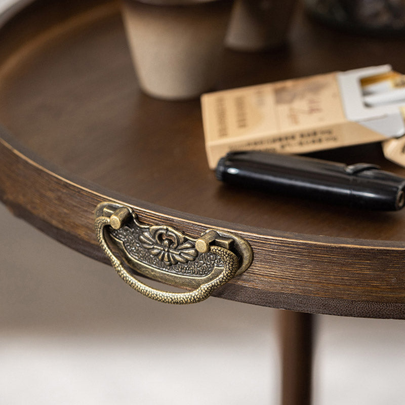 Finished in a warm walnut tone, it functions as a movable tea table or game side table with ashtray, perfect for living rooms and entertainment spaces.