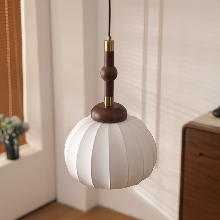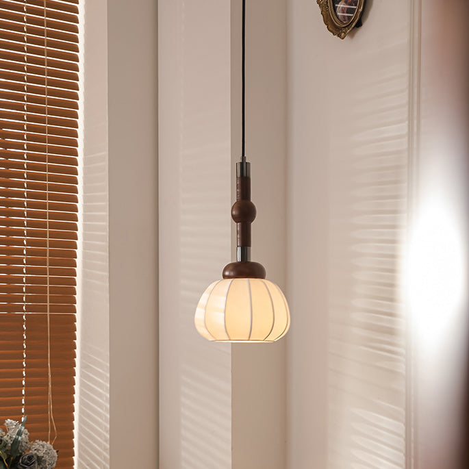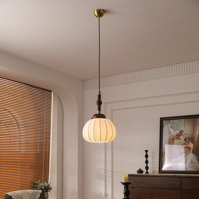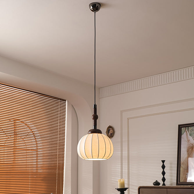 Traditional French Cylinder Lantern Shape Aluminum Wood Frame Silk Shade 1-Light Pendant Light For Living Room