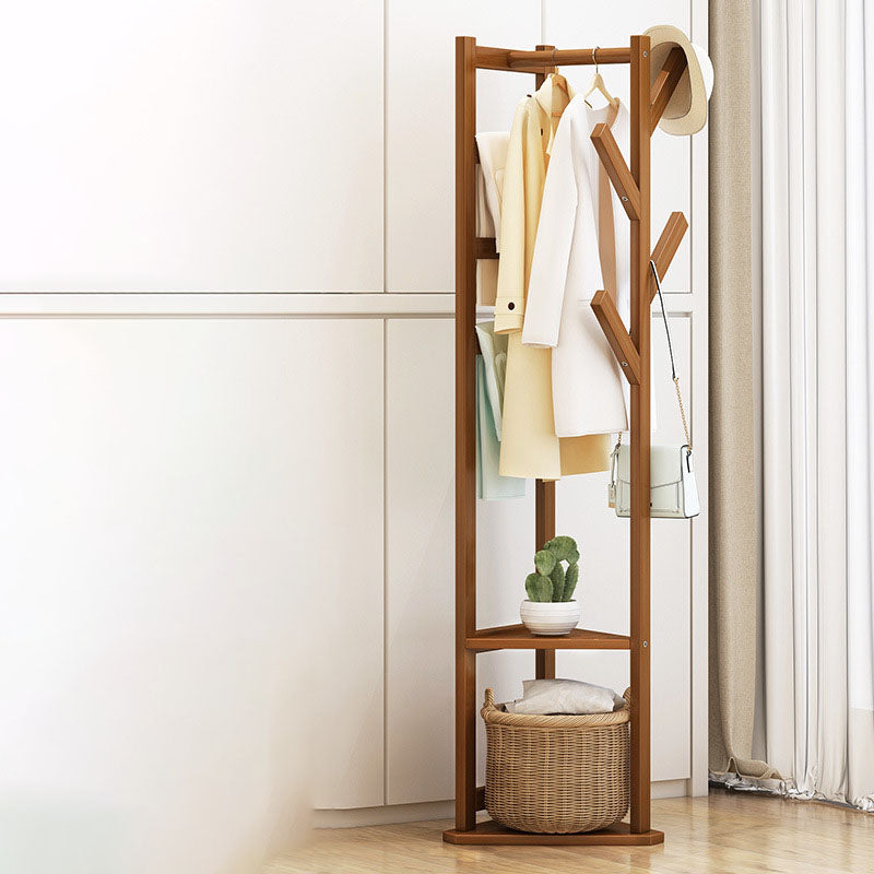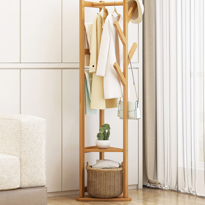 This solid bamboo coat rack features a tri-branch design with 2 storage tiers, rounded hooks to protect clothes, and a sturdy triangular base for stability. Available in natural and tea wood tones, it’s durable, crack-resistant, and perfect for bedrooms, entryways, and hallways in modern Japanese-inspired homes.