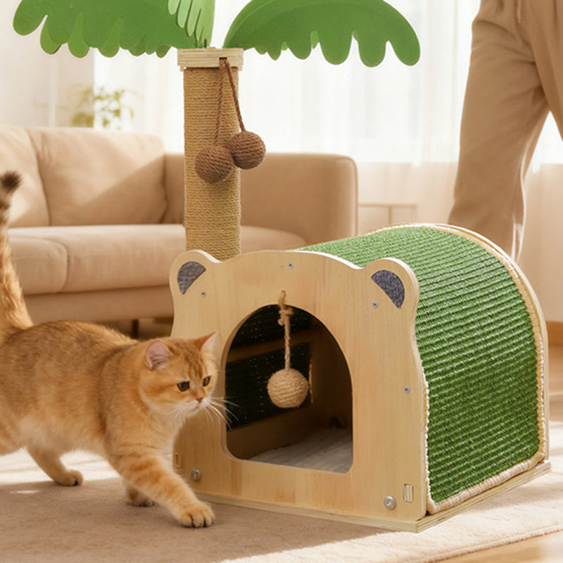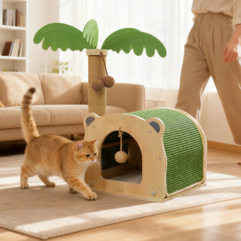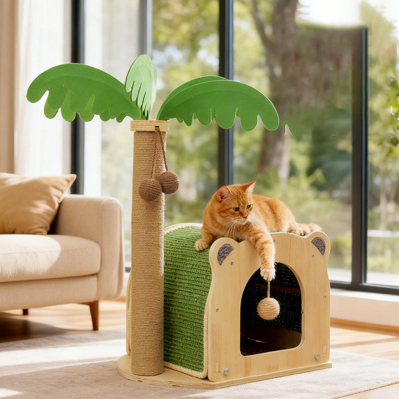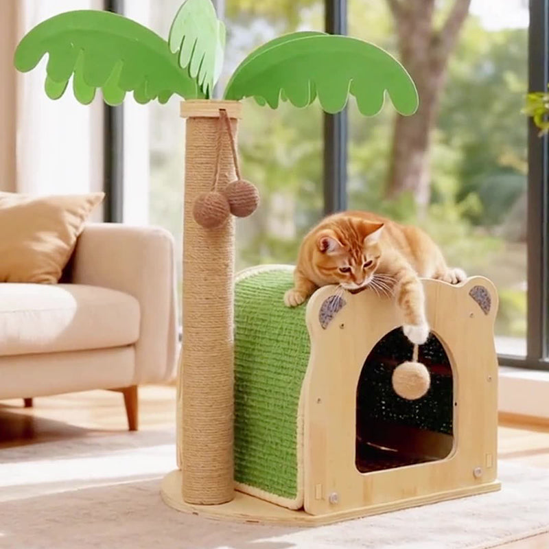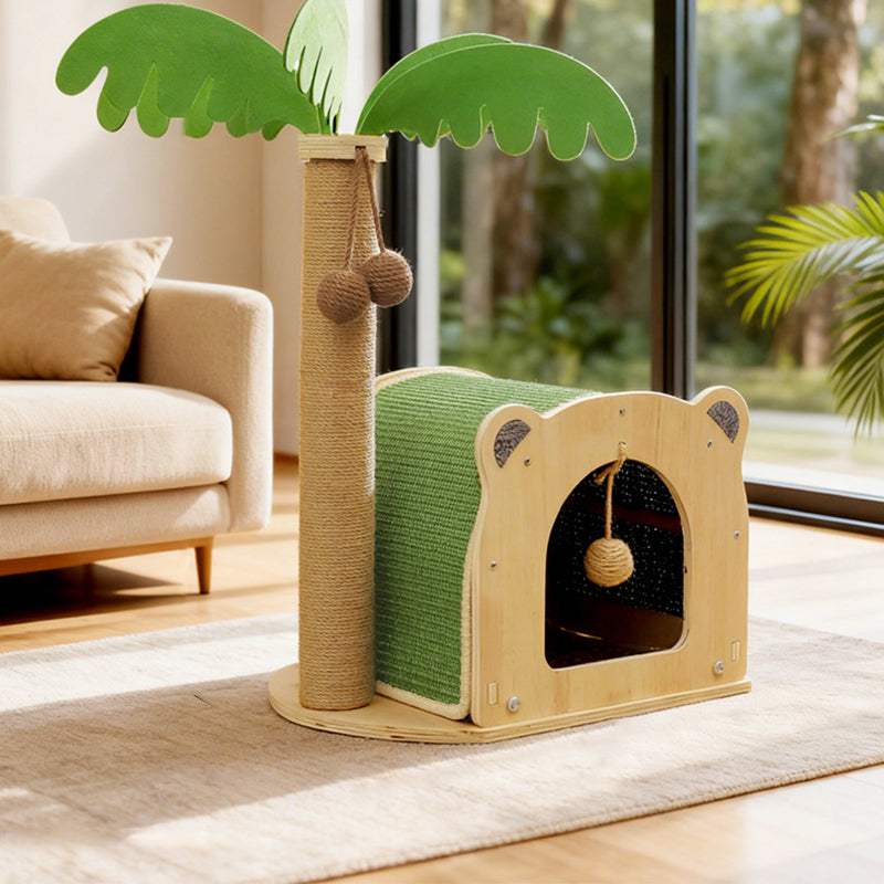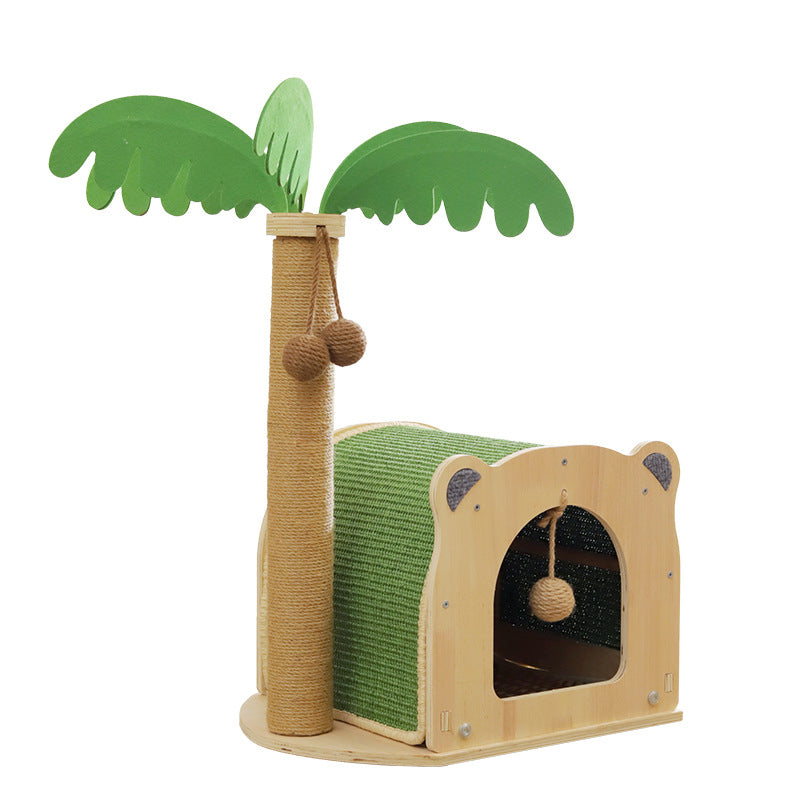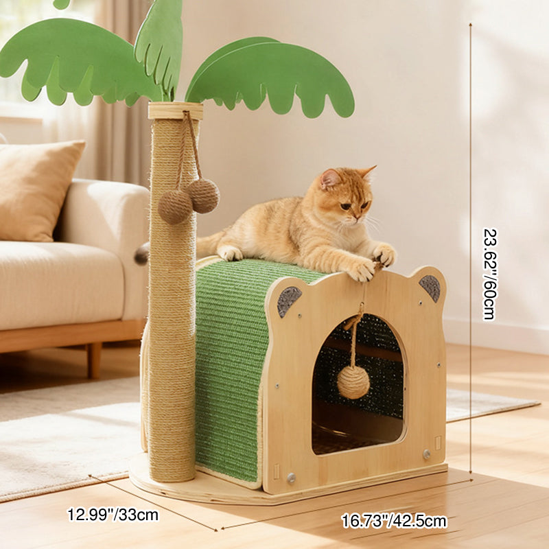 Made of sturdy multi-layer board and wear-resistant jute rope, this Traditional Country coconut tree-shaped cat tree features a stable structure, perfect for cats to climb, hide and scratch without shedding debris. With a 1-tier design and available in green and natural wood colors, it’s a functional and decorative pet furniture piece for your living room.