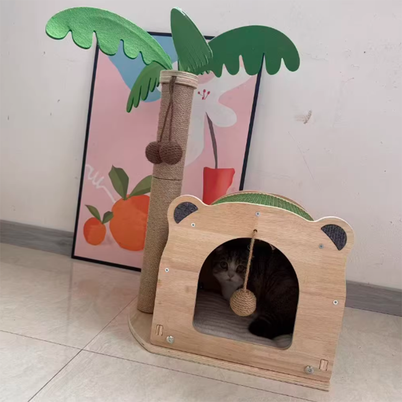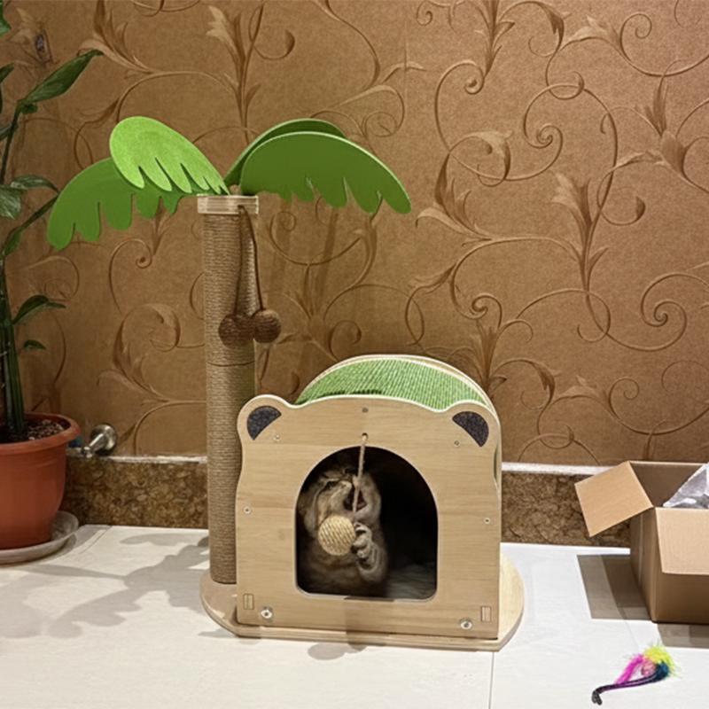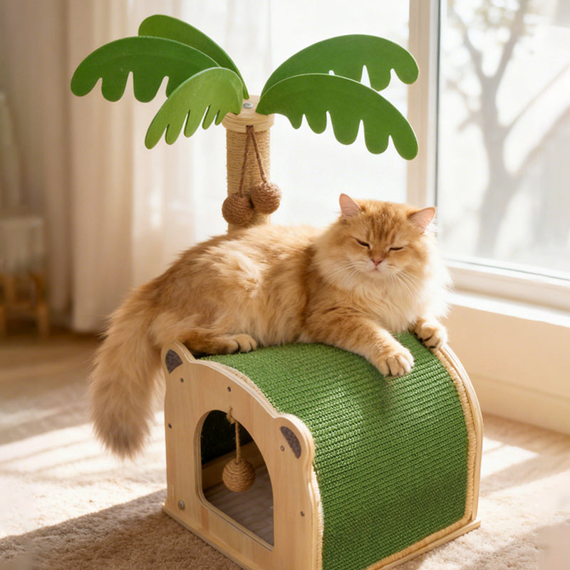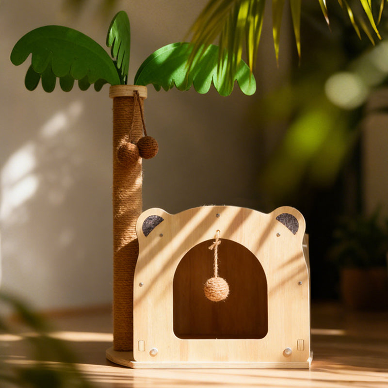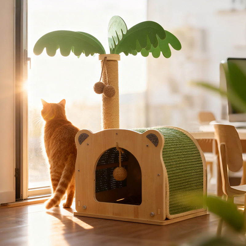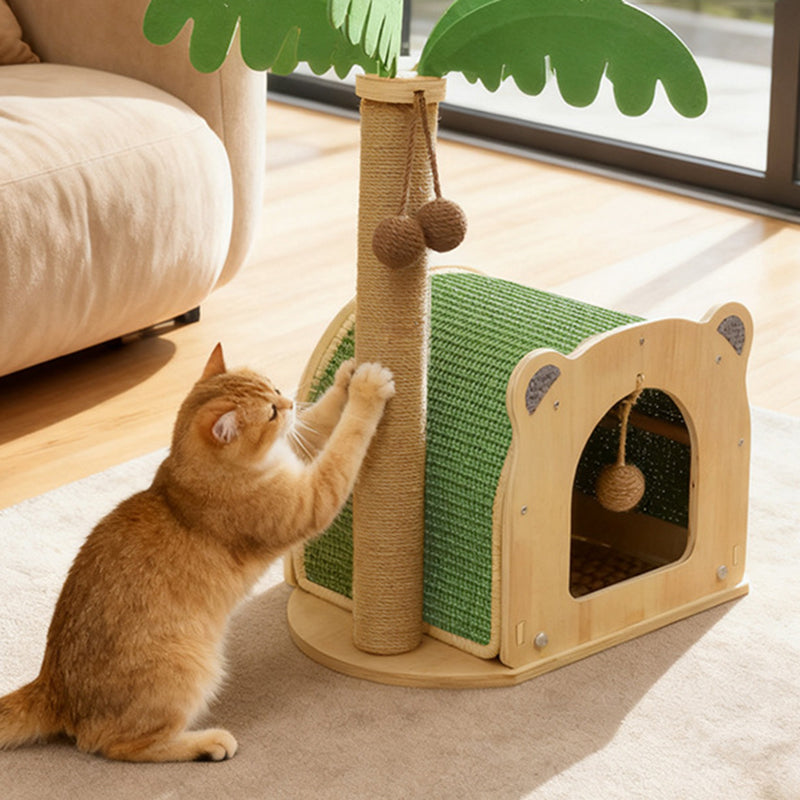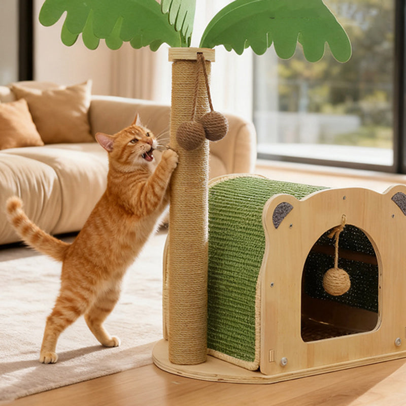 Made of sturdy multi-layer board and wear-resistant jute rope, this Traditional Country coconut tree-shaped cat tree features a stable structure, perfect for cats to climb, hide and scratch without shedding debris. With a 1-tier design and available in green and natural wood colors, it’s a functional and decorative pet furniture piece for your living room.