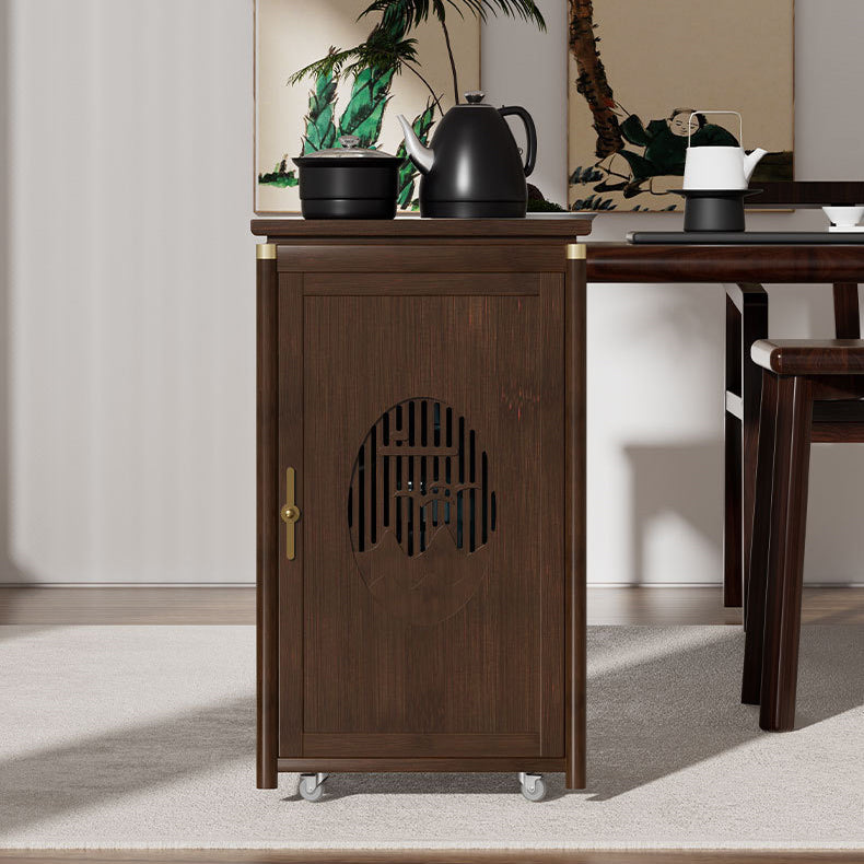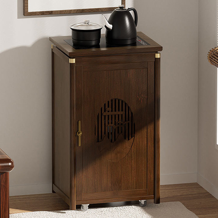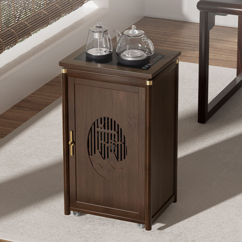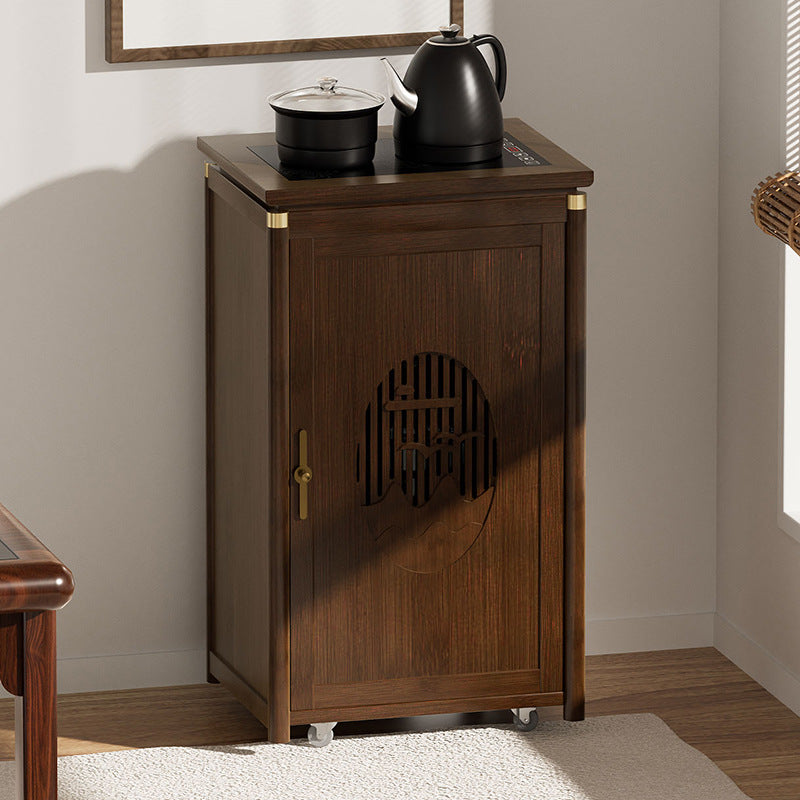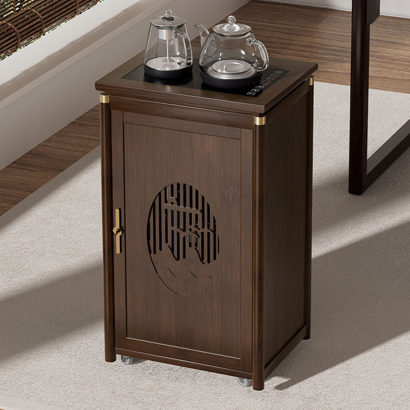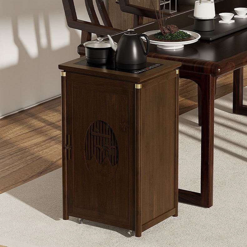 Crafted from durable bamboo and wood, this traditional tea side table features an elegant carved panel and practical storage space. Its warm brown finish and integrated water kettle shelf make it ideal for living rooms, tea corners, or cozy bar setups.
