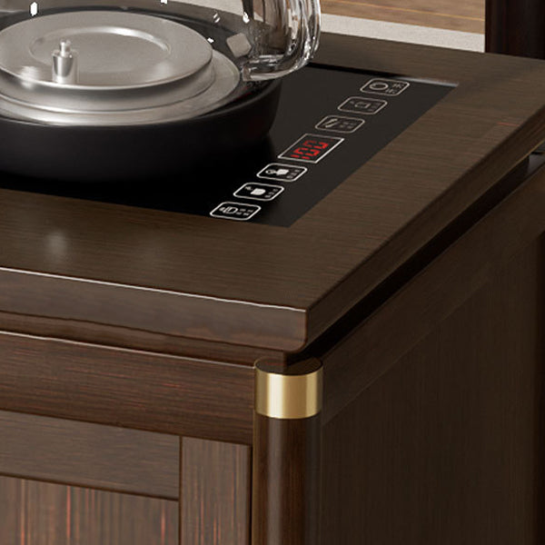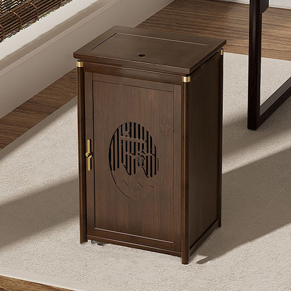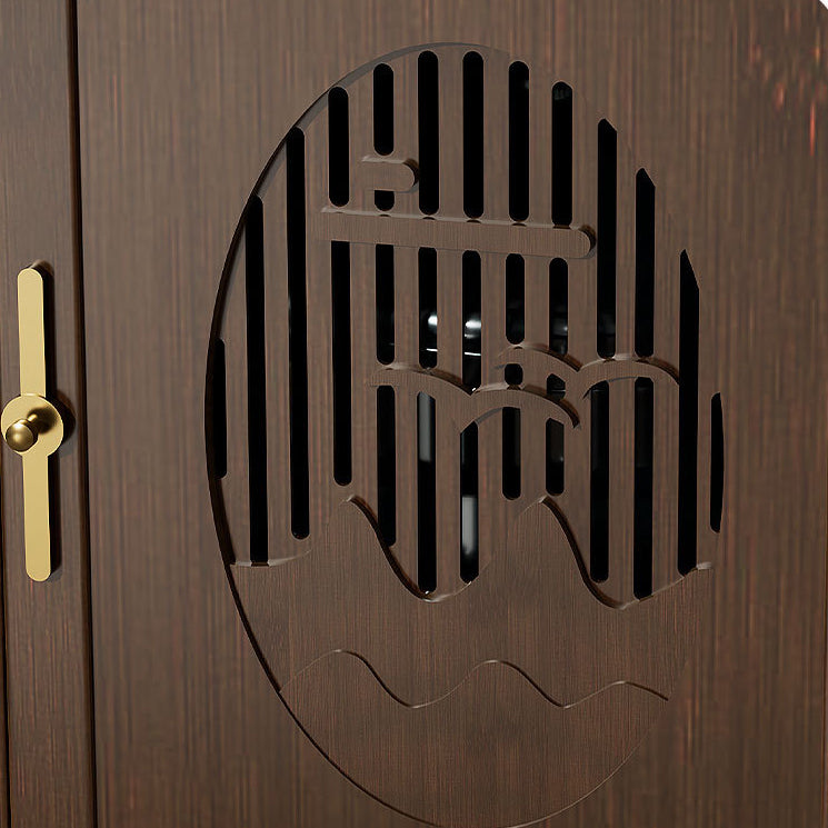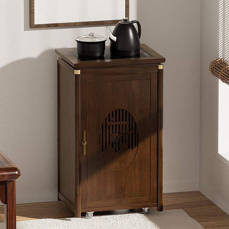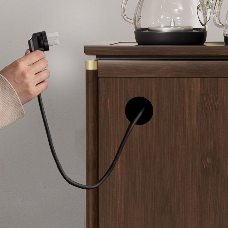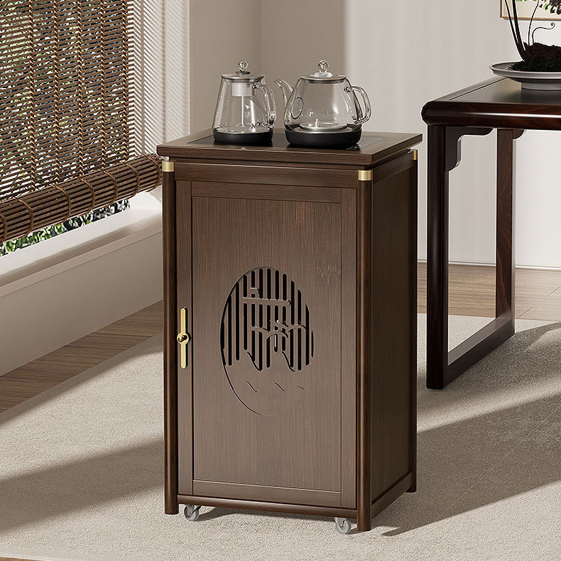 Crafted from durable bamboo and wood, this traditional tea side table features an elegant carved panel and practical storage space. Its warm brown finish and integrated water kettle shelf make it ideal for living rooms, tea corners, or cozy bar setups.