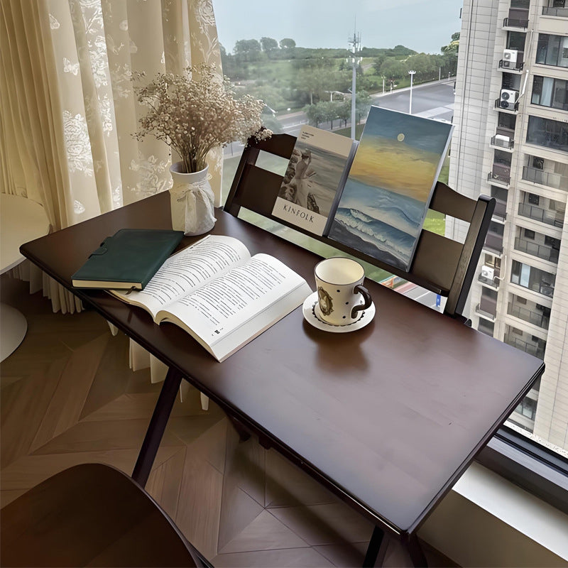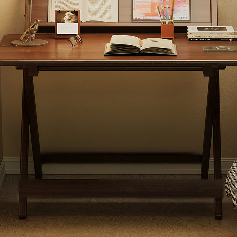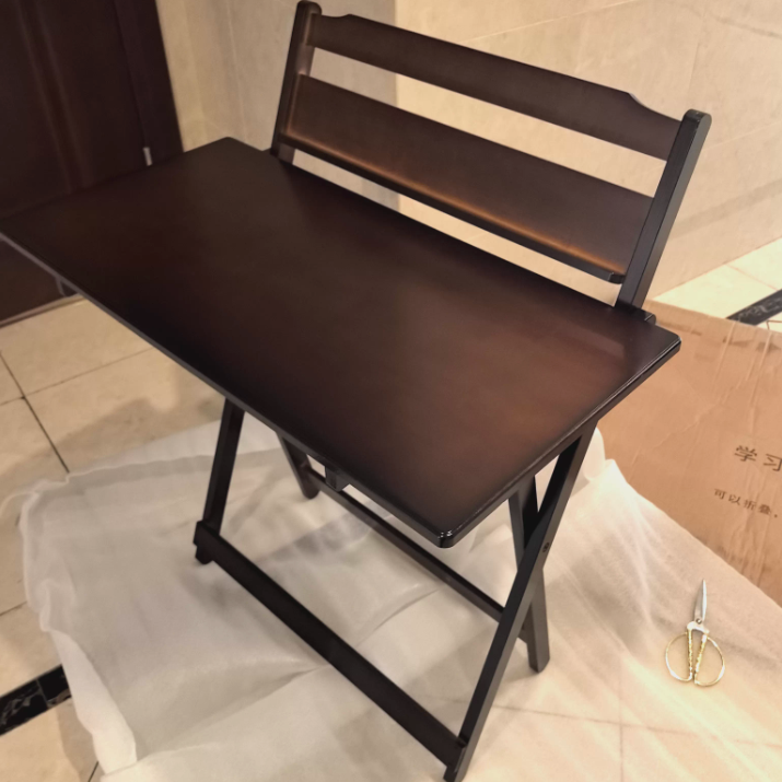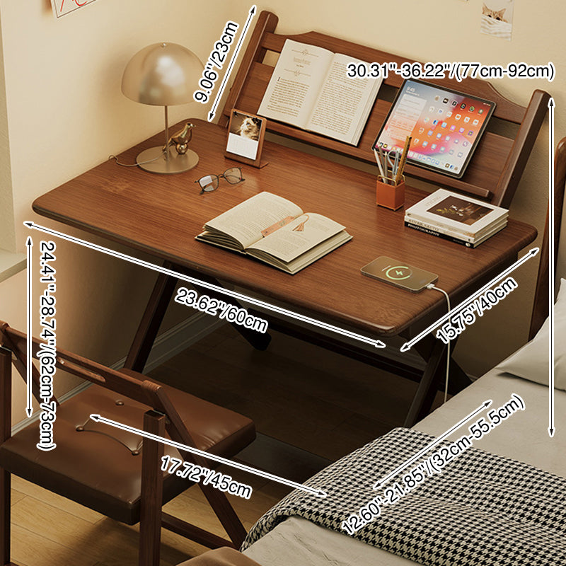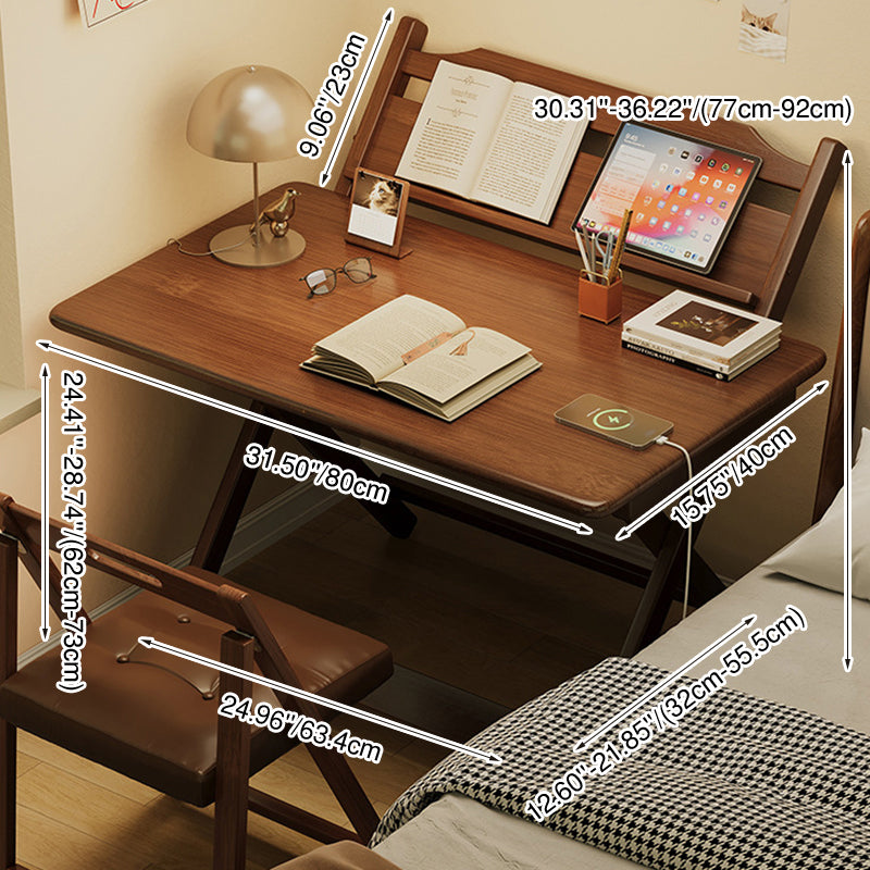 This traditional vintage bamboo desk features a rounded rectangle design with 1 tier. It is multi-functional and foldable, offering stable support and four adjustable height levels, in a walnut color, ideal for children’s study, dormitories, or home offices.