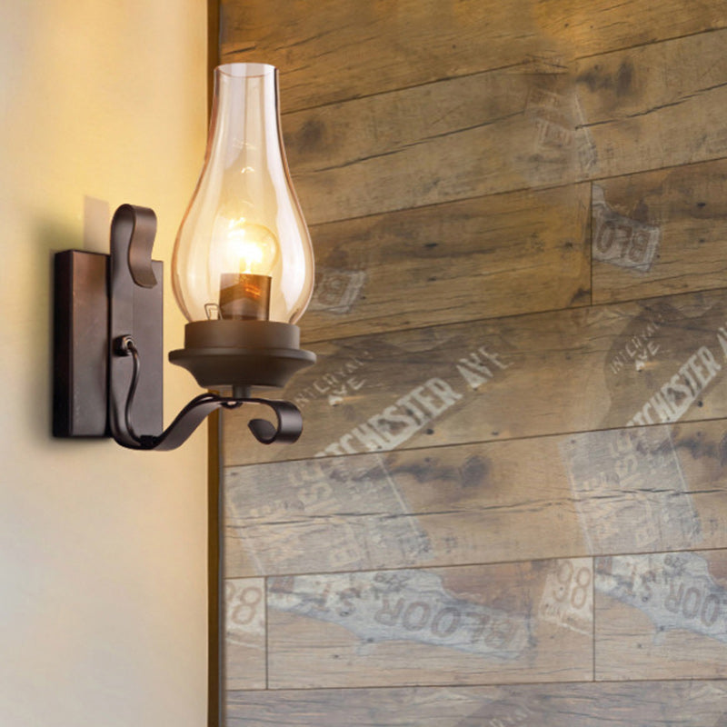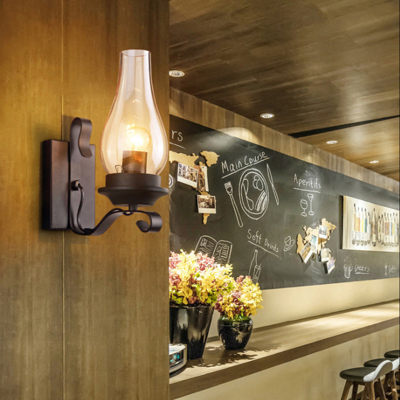 Traditional Vintage Bottle Iron Glass 1-Light Wall Sconce Lamp For Hallway