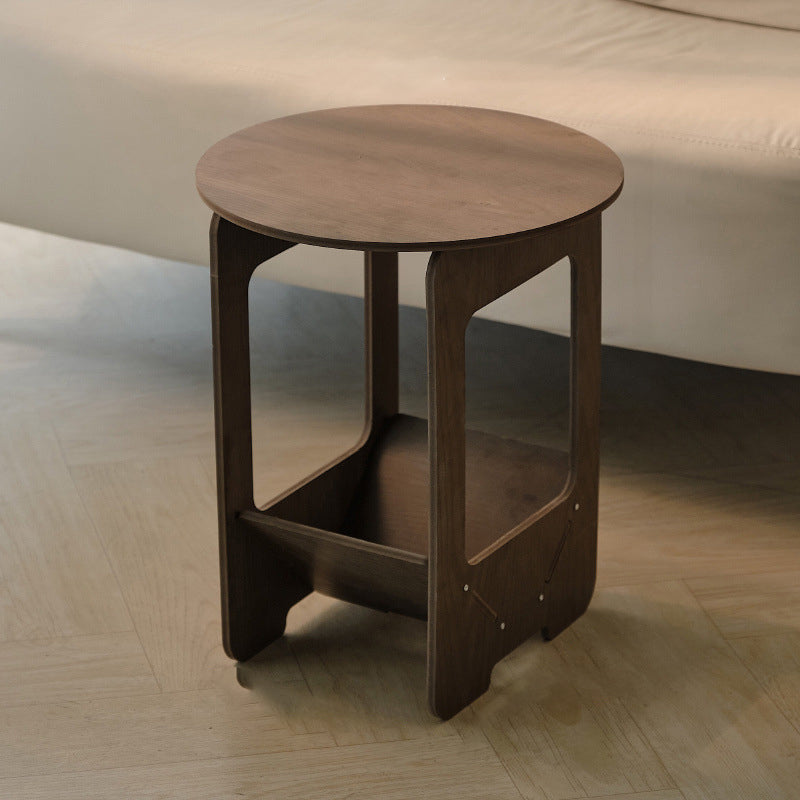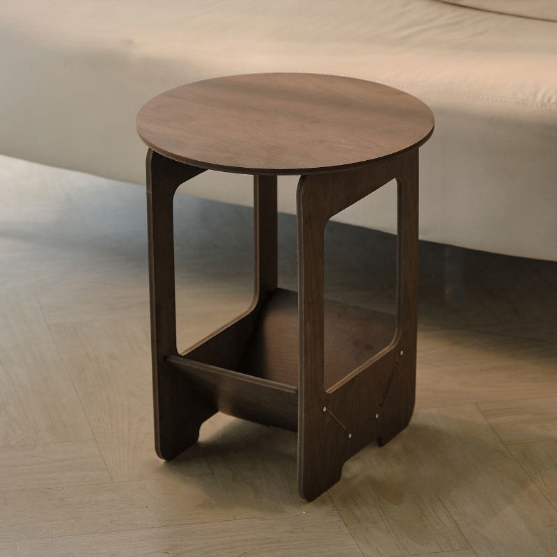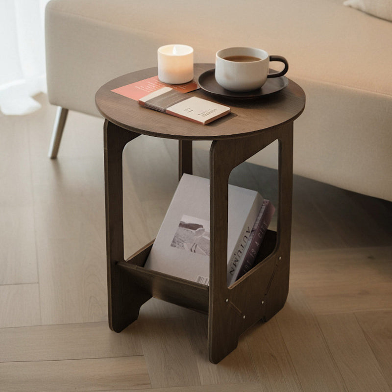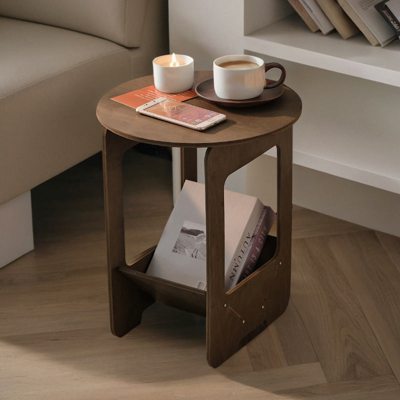 This Traditional Vintage engineered wood coffee table features a round or square silhouette with a 2-tier structure, offering practical storage for living room, balcony, or bedside use. Finished in walnut or white, it is crafted with thickened panels for strong load-bearing support and smooth rounded corners to help prevent bumps, blending classic European charm with everyday durability.