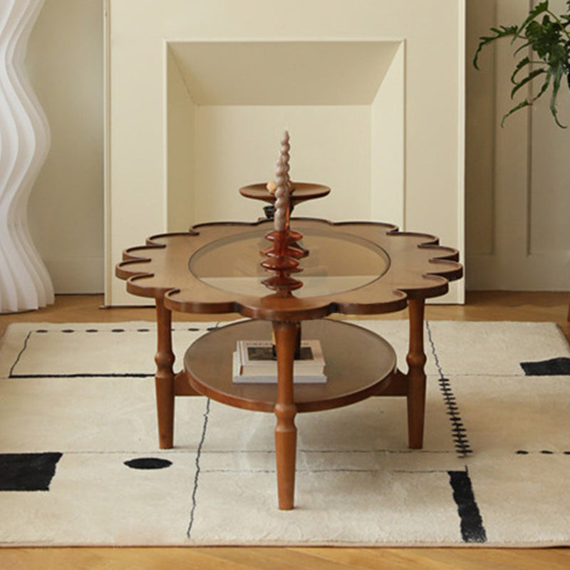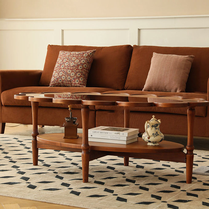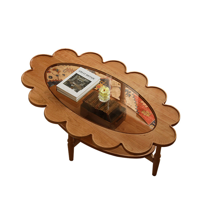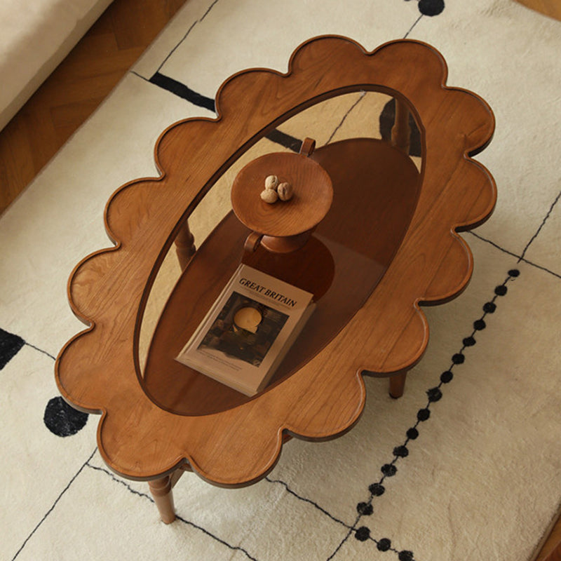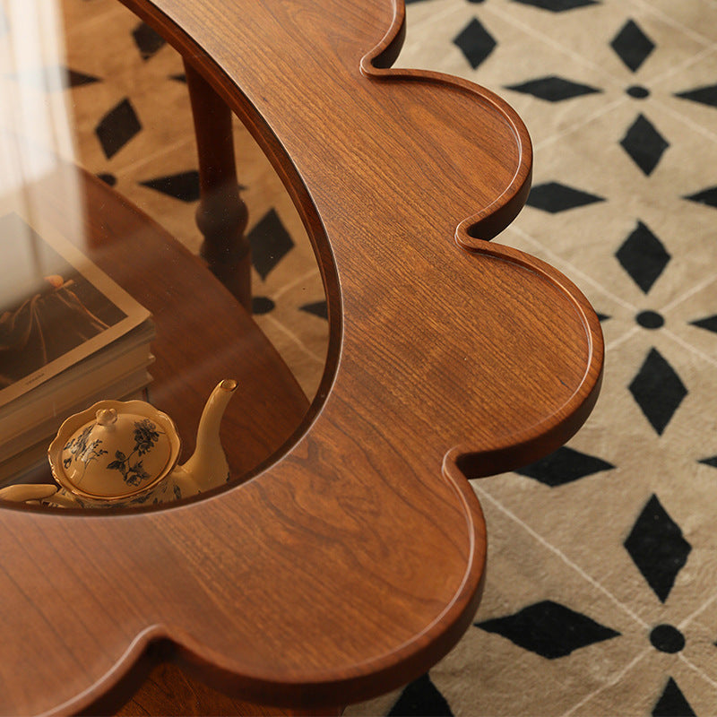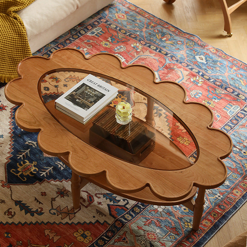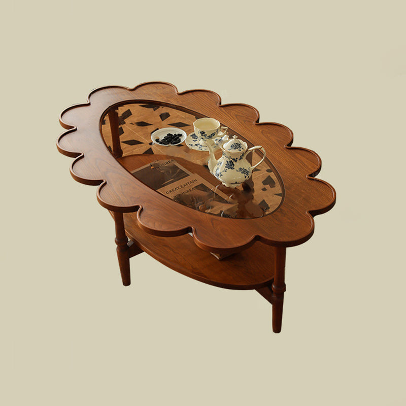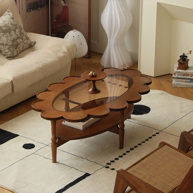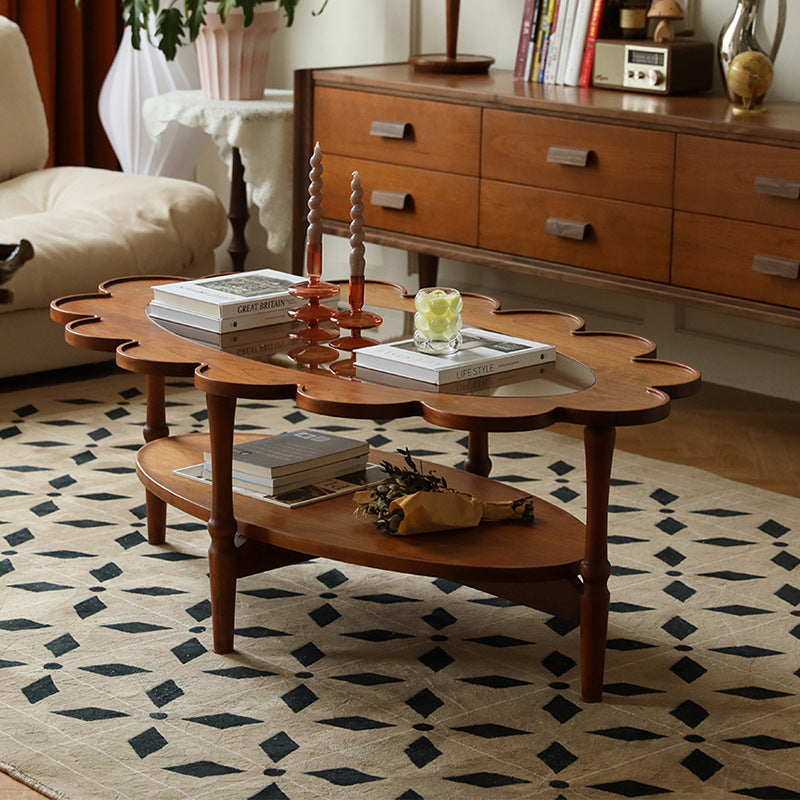 Introduce a touch of timeless elegance with this vintage-style floral coffee table. Featuring a durable solid wood frame available in classic walnut or cherry tones, this piece offers a charming, functional addition to your living room.