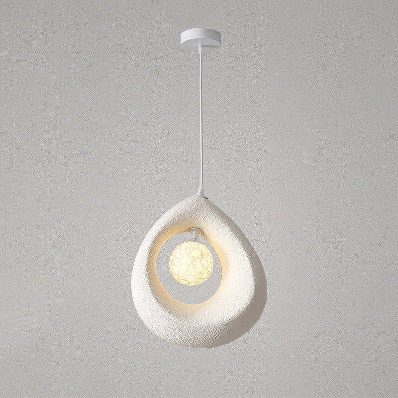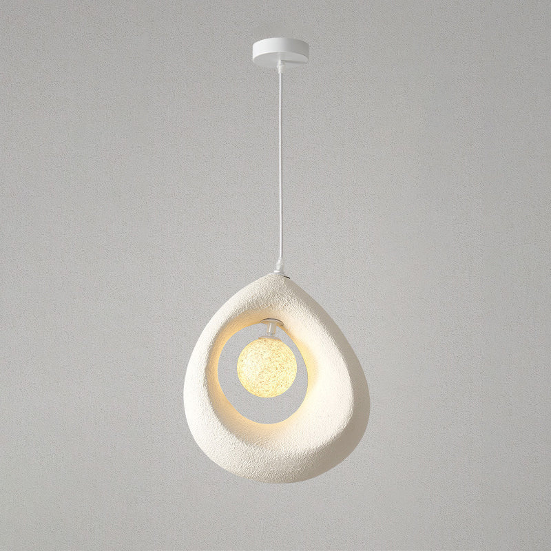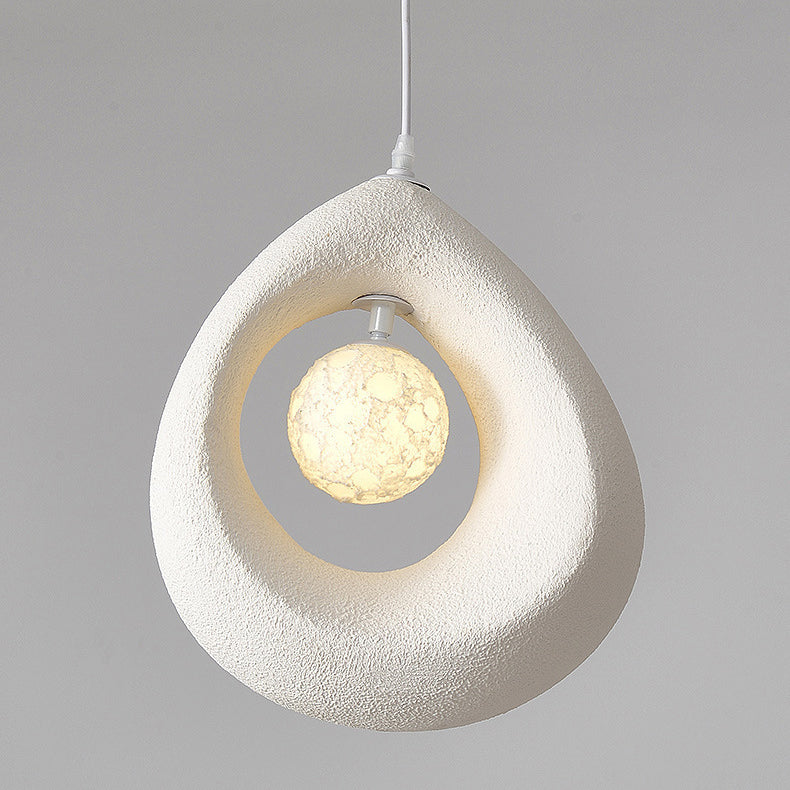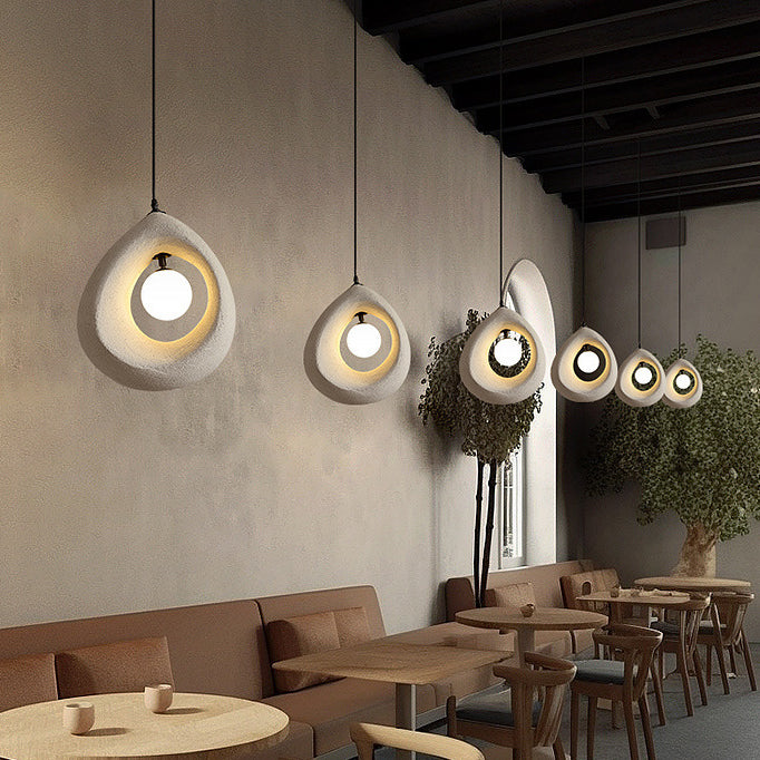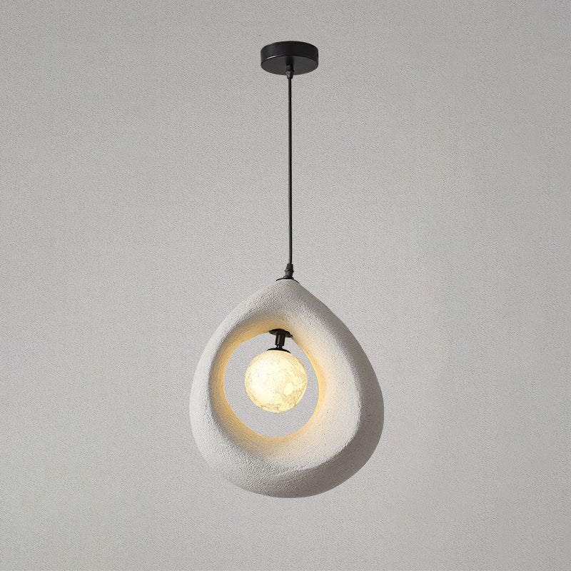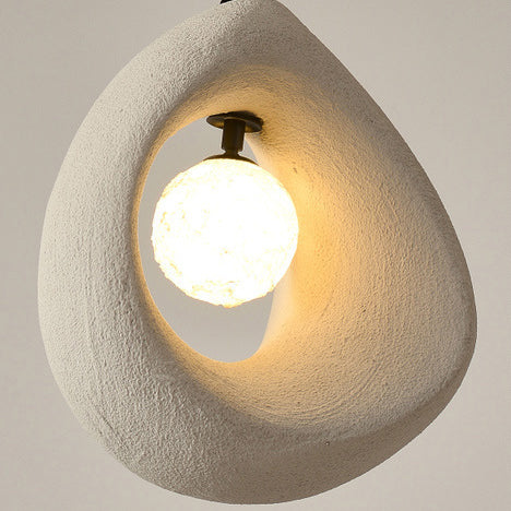 This 1-light pendant light features a unique curved egg-shaped design crafted from high-density polystyrene, with a refined textured finish in white, light gray, or dark gray. Perfect for adding a touch of traditional vintage style to bedrooms or living rooms, it blends soft ambiance with minimalist Japanese aesthetics.