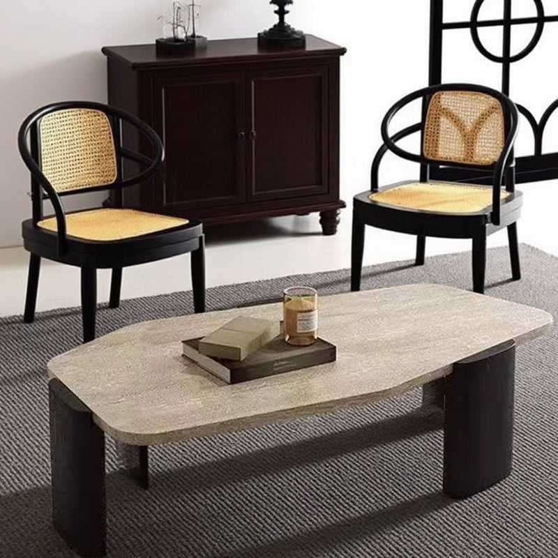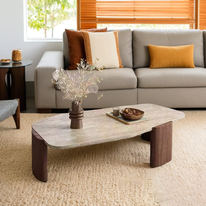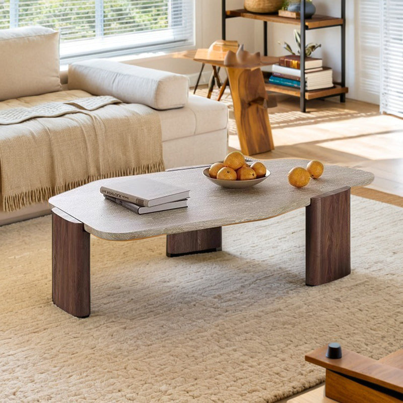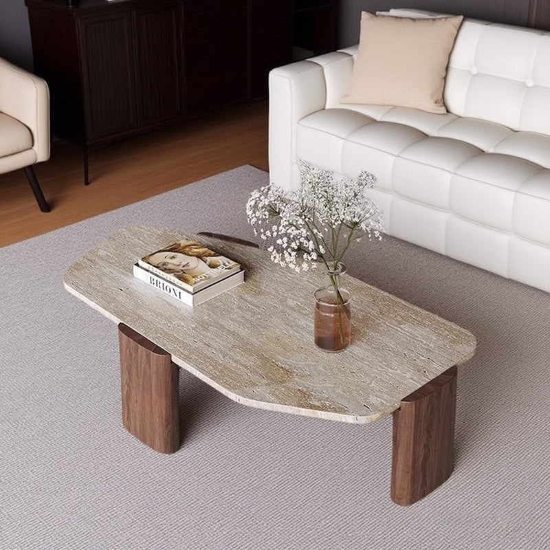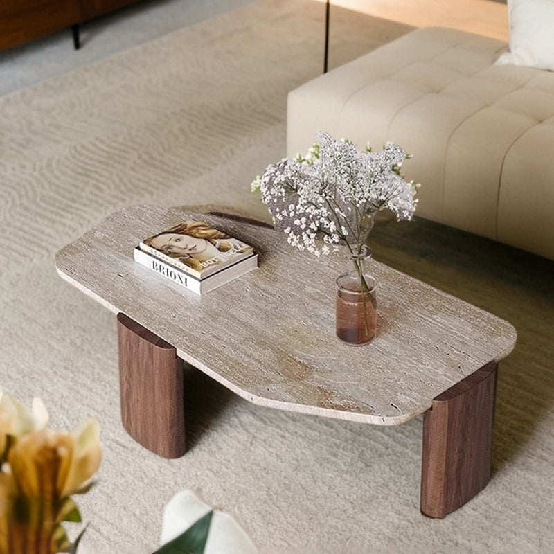 This vintage-inspired coffee table captures the essence of wabi-sabi refinement, pairing an organic, irregular natural stone tabletop with elegantly tapered solid wood legs. The sophisticated contrast of deep walnut and black tones lends a timeless character to the piece, ensuring it serves as a compelling statement in any setting. Expertly engineered for both stability and longevity, its space-conscious silhouette makes it an ideal choice for living rooms and curated small spaces seeking a perfect balance of sturdy craftsmanship and artistic soul.