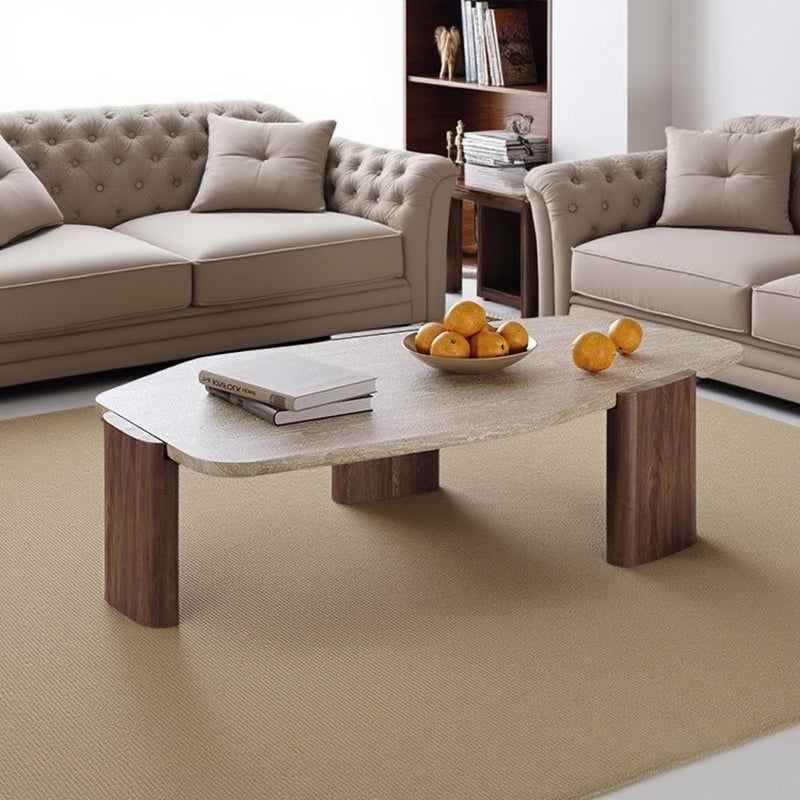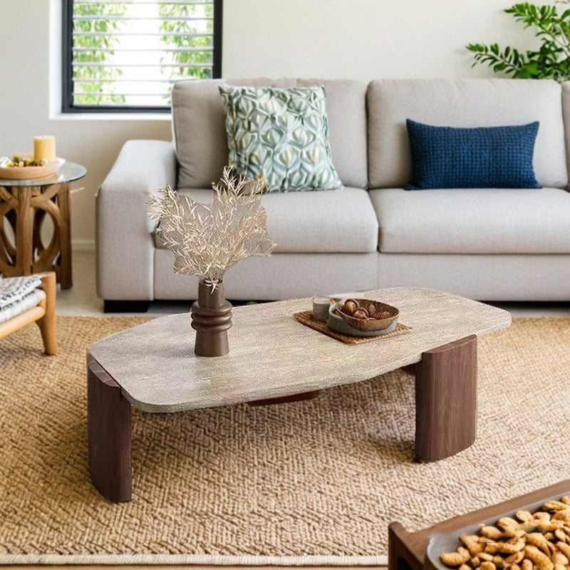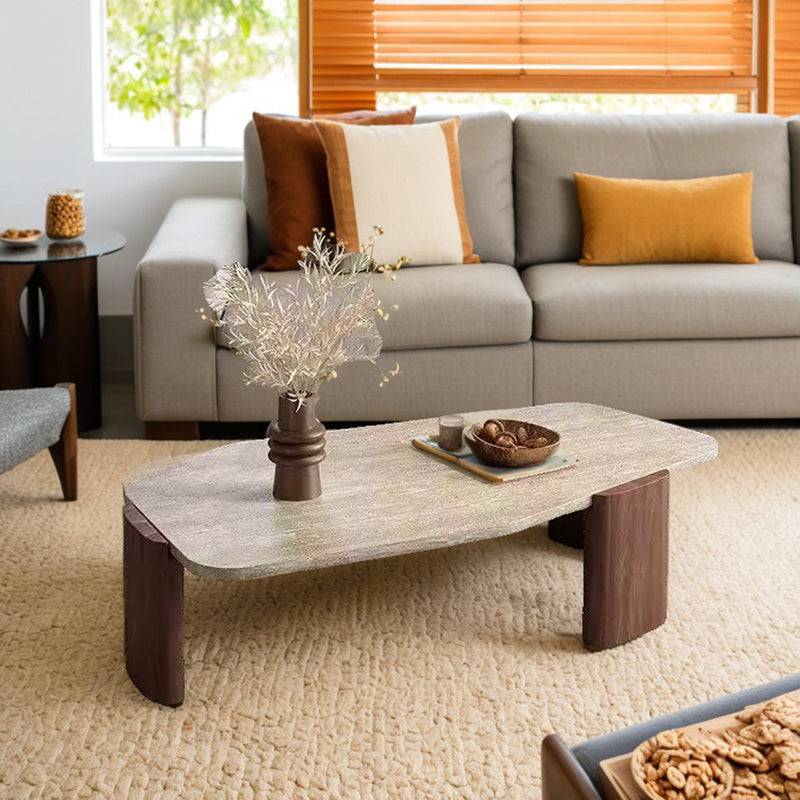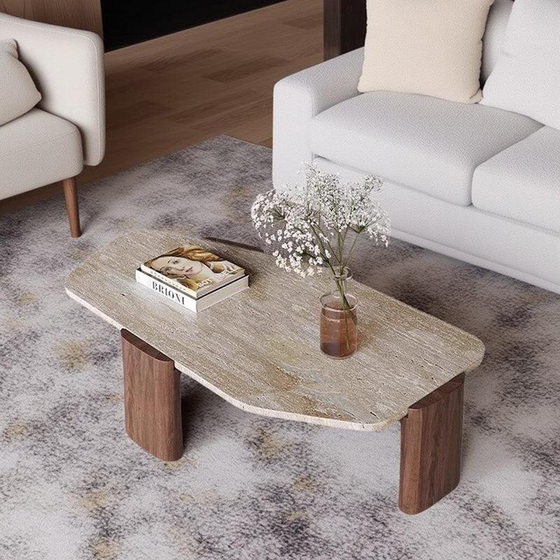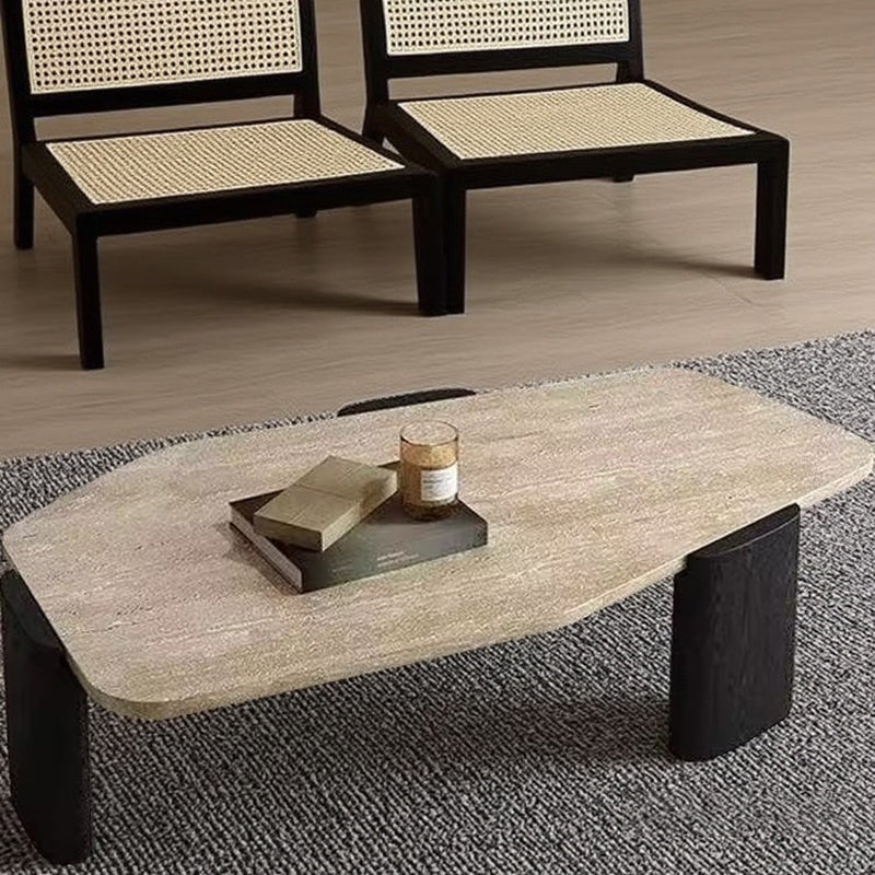 This vintage-inspired coffee table captures the essence of wabi-sabi refinement, pairing an organic, irregular natural stone tabletop with elegantly tapered solid wood legs. The sophisticated contrast of deep walnut and black tones lends a timeless character to the piece, ensuring it serves as a compelling statement in any setting. Expertly engineered for both stability and longevity, its space-conscious silhouette makes it an ideal choice for living rooms and curated small spaces seeking a perfect balance of sturdy craftsmanship and artistic soul.