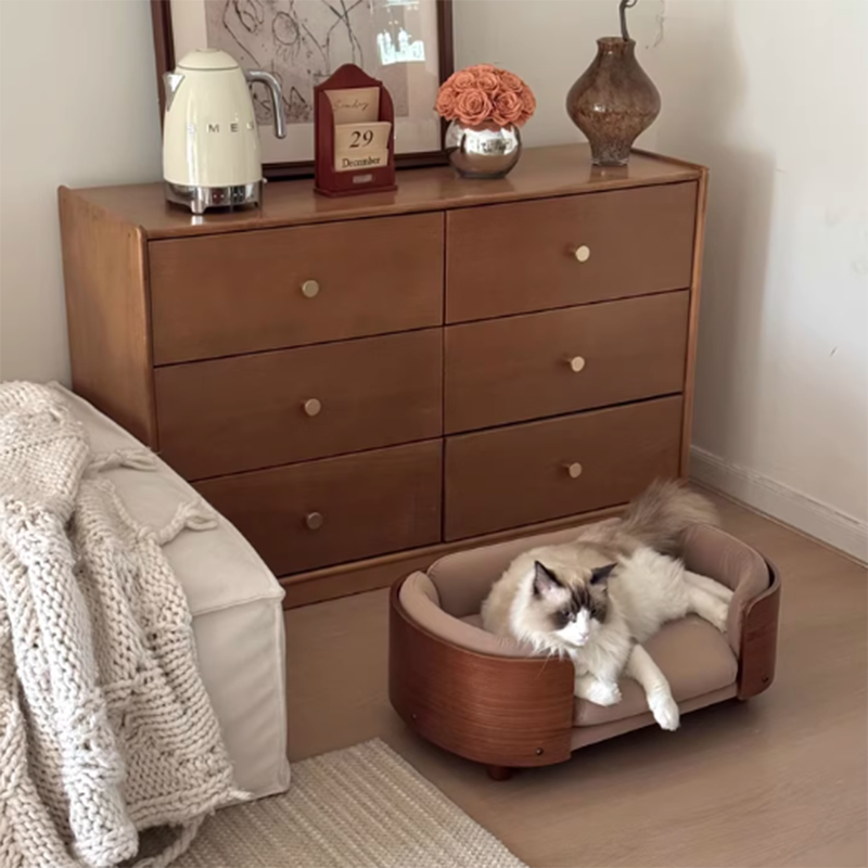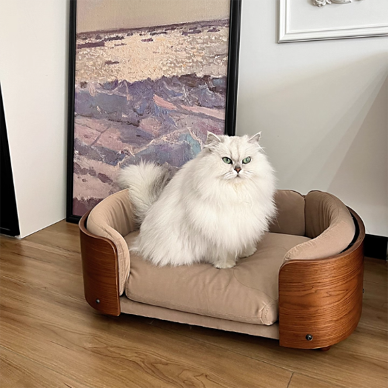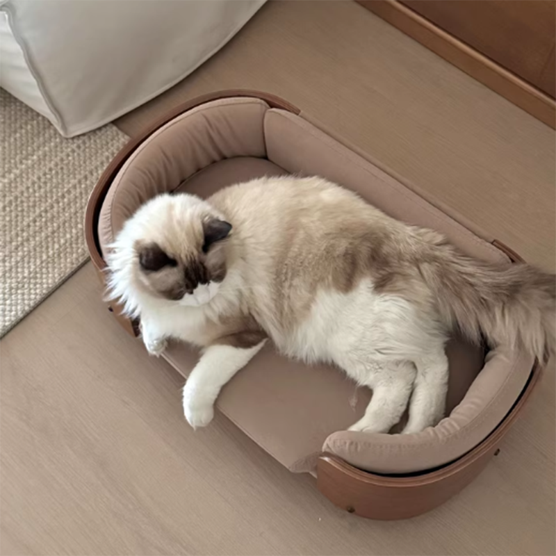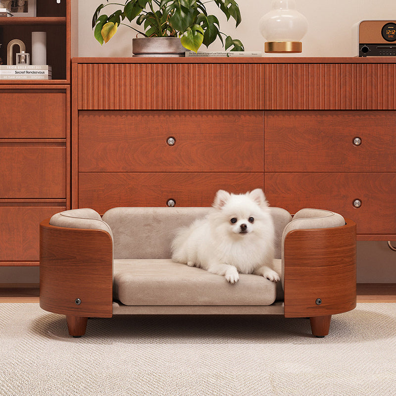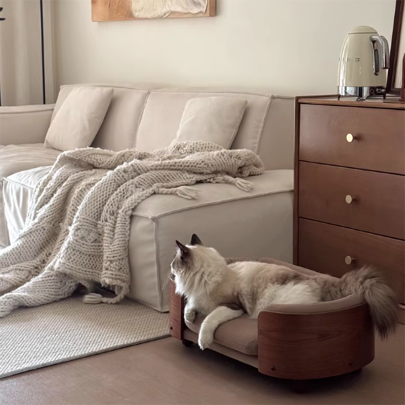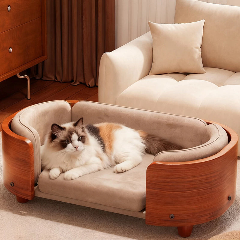 Elevate your pet’s lifestyle with a piece of furniture that rivals your own living room set. Our vintage-inspired cat sofa is masterfully constructed with a solid wood frame in a rich Walnut finish, bringing the timeless elegance of Mid-Century Modern design to your pet’s favorite corner. Featuring a sophisticated oval silhouette, this bed offers a structured, three-sided cushioned bolster that provides essential head and neck support. It is the perfect "furniture-grade" sanctuary for the discerning pet owner who refuses to compromise on home aesthetics, blending seamlessly into upscale living rooms, home offices, or master bedrooms.