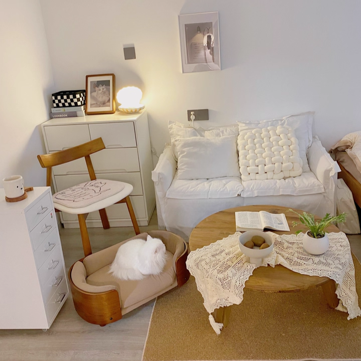 Beyond its designer looks, this high-capacity pet lounger is engineered for the ultimate "Deep-Sleep" experience. The interior is upholstered in ultra-soft, breathable plush fabric and layered with high-density sponge padding for superior pressure relief and joint support. Designed to accommodate cats and small dogs up to 10kg (22 lbs), the sofa features fully removable and machine-washable cushions, ensuring a hygienic and fresh environment with zero hassle. Whether your companion is a "curler" or a "sprawler," this is the premier choice for shoppers seeking luxury wooden cat beds, Mid-Century pet furniture, orthopedic dog sofas with walnut frames, and washable designer pet loungers.
