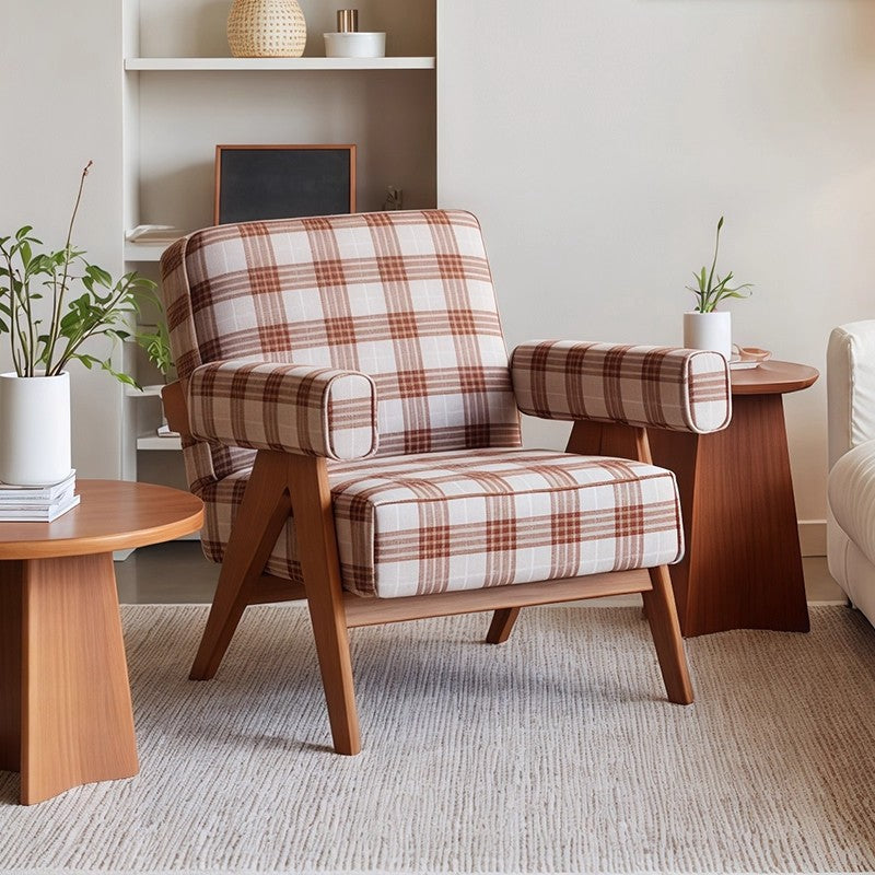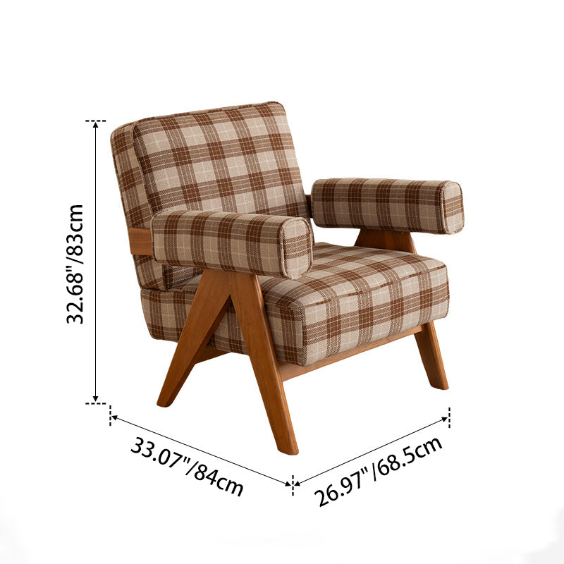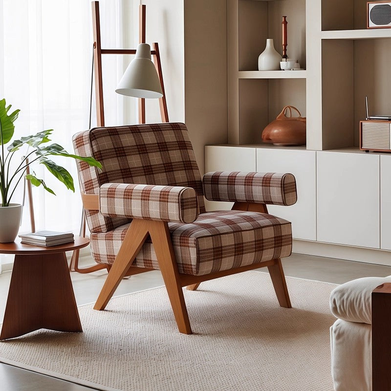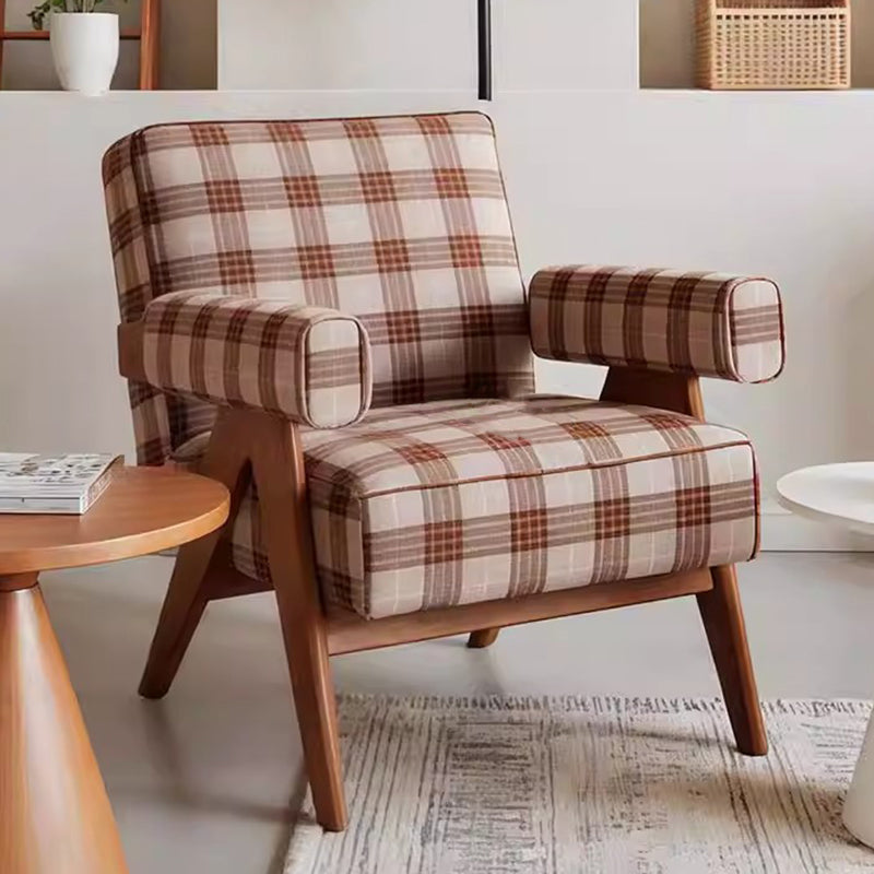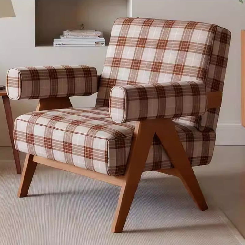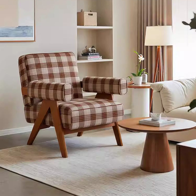 This vintage-inspired sofa chair features breathable jacquard fabric, a durable solid ash wood frame, and plush high-elastic sponge for comfortable everyday seating. Designed with a supportive backrest and armrests, it offers stable support and a skin-friendly feel. Available in a warm brown tone, this rectangular lounge chair adds a classic retro touch to any living room.