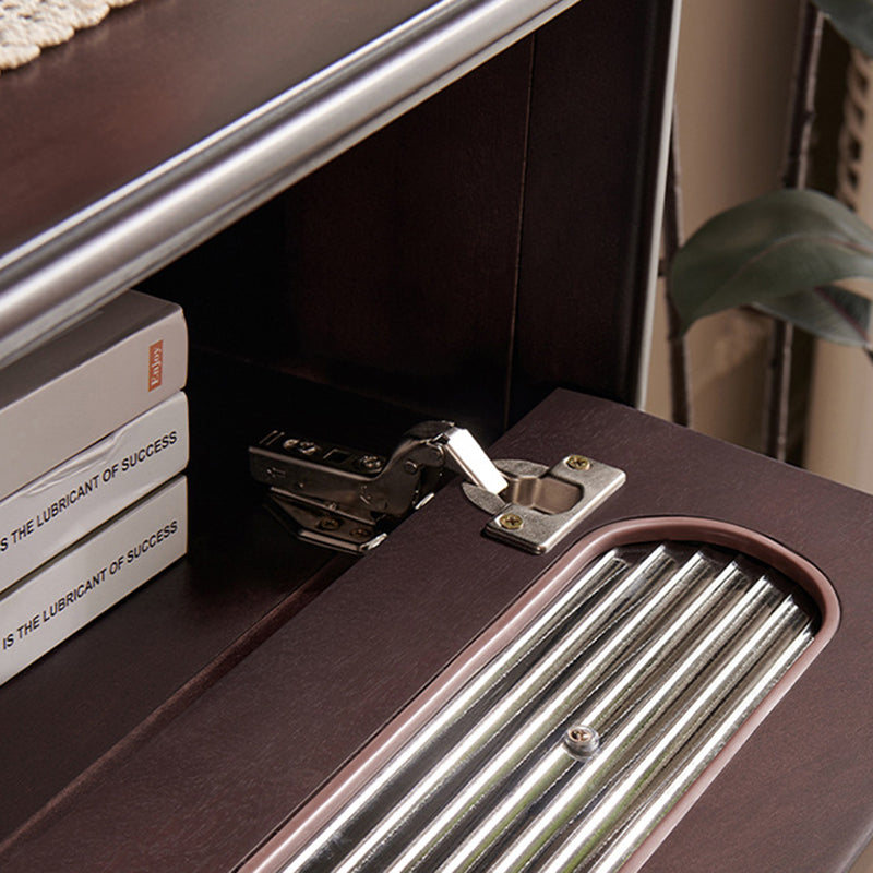 Engineered for "flexible, large-capacity storage," this cabinet offers a versatile organizational layout featuring four spacious drawers alongside a dedicated cabinet compartment. This hybrid design allows you to neatly tuck away everything from folded linens and clothing to larger household essentials. With its sturdy weight support and robust solid wood construction, this armoire is built to remain a staple in your home for generations. Optimized for North American consumers searching for solid mahogany storage chests, vintage wood cabinets with drawers, smoked oak style armoires, and high-end entryway organizers.