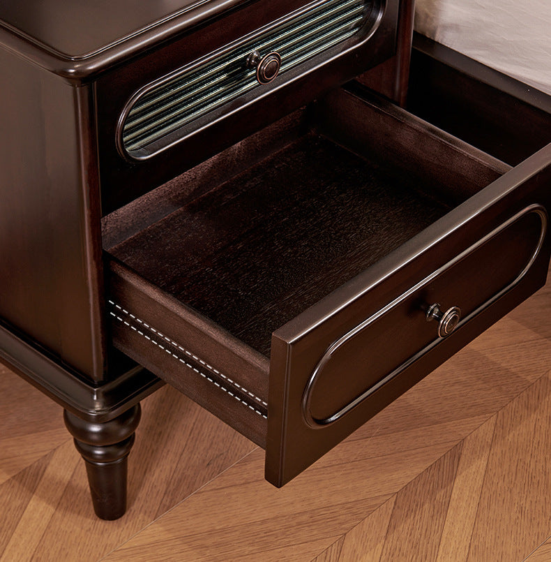 Infuse your bedroom with timeless style using this traditional vintage nightstand, blending classic design with robust functionality.