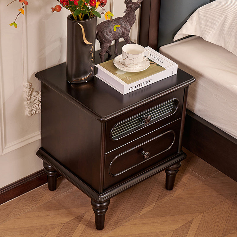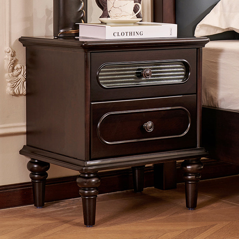 This piece is expertly crafted from a combination of durable rubberwood, rich mahogany, and multi-layer solid wood, ensuring structural integrity and a refined appearance. It features a clean rectangular silhouette and includes two spacious drawers, offering ample and convenient bedside storage.