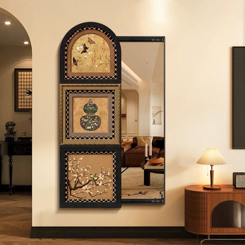 Redefine your home’s "visual flow" with our vintage-style sliding full-length mirror, a genius fusion of high-end utility and industrial art. This dual-purpose statement piece features a robust frame crafted from high-density MDF in a sophisticated distressed black patina, designed to mimic the raw character of weathered architectural steel. The standout feature is its innovative sliding mechanism, which allows the unit to transition from a full-body dressing mirror to a textured decorative wall panel in one smooth motion. Whether anchored in a moody "Dark Academia" living room or a "Modern Loft" hallway, it serves as a high-impact focal point that adapts to your lifestyle.