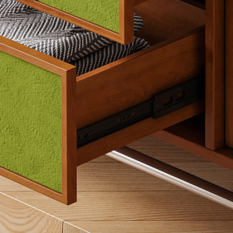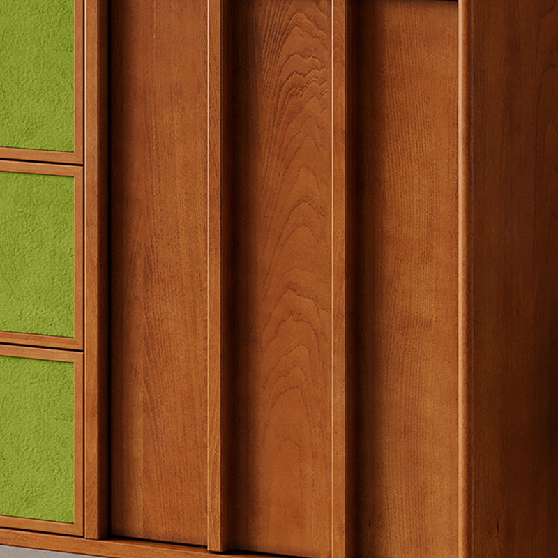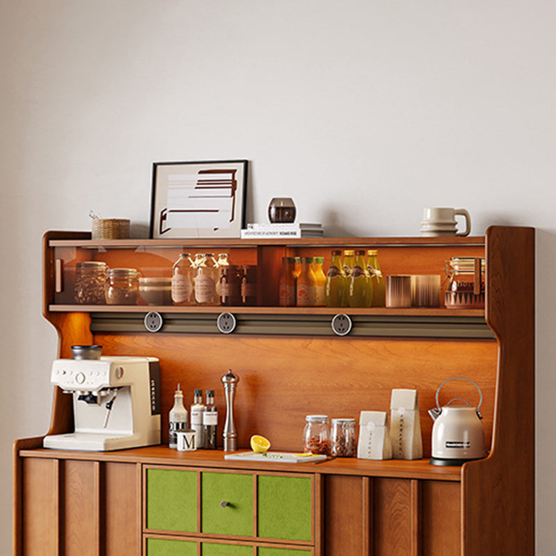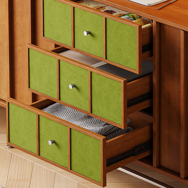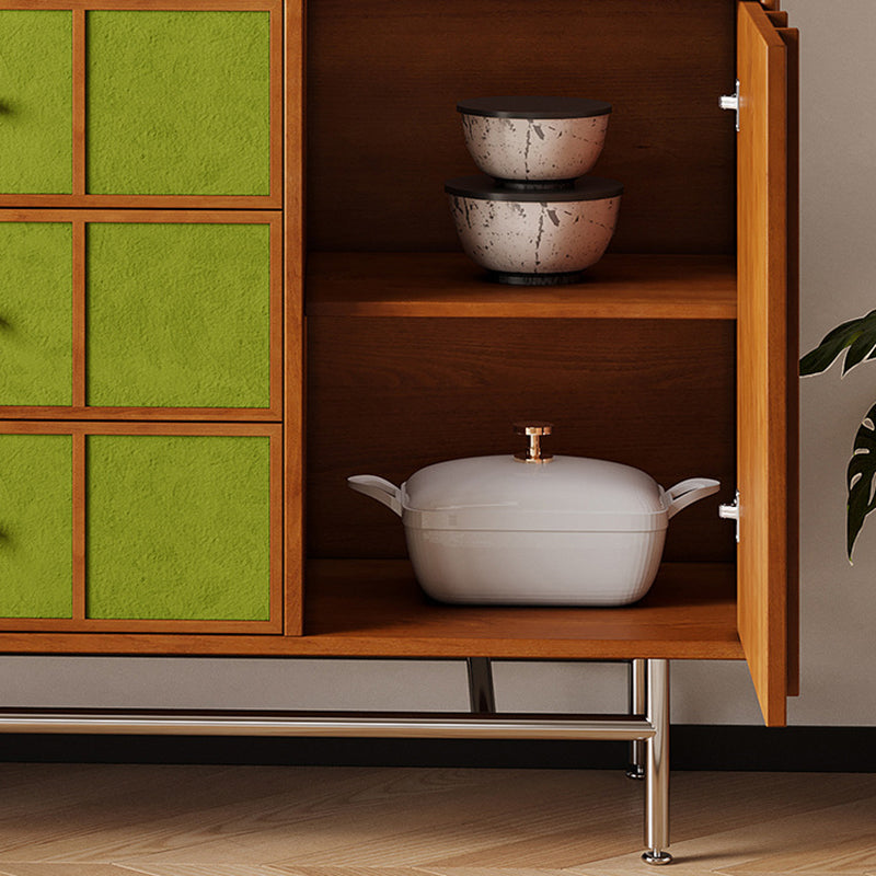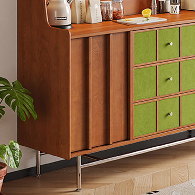 Exuding traditional vintage charm, this statement storage cabinet is built with a solid multilayer wood frame and finished in rich walnut, accented by stainless steel hardware. Designed for versatile organization, it offers three drawers, two spacious cabinets, and three open display shelves. Its durable, eco-friendly construction provides ample space for both storing and showcasing items, making it an ideal accent piece for living rooms, dedicated coffee bars, or sophisticated home beverage stations.