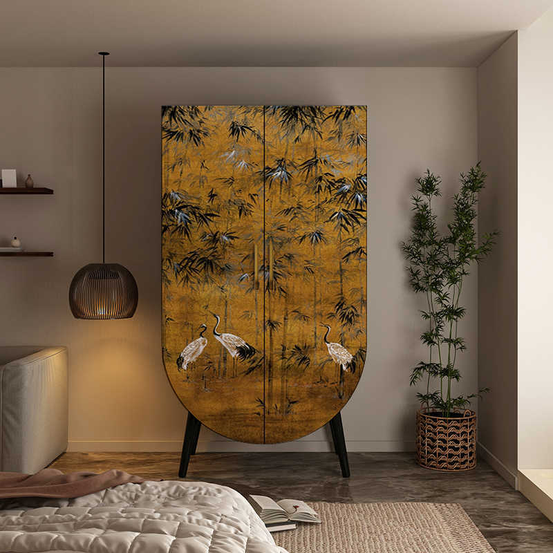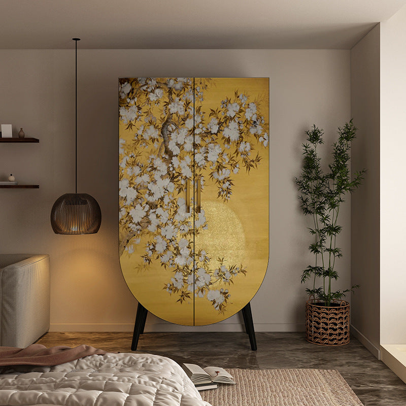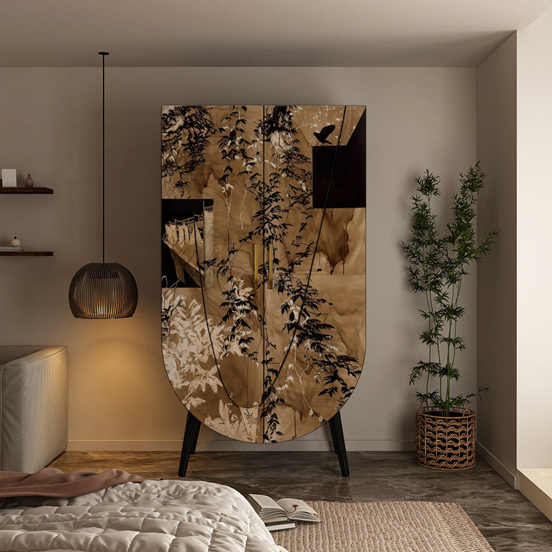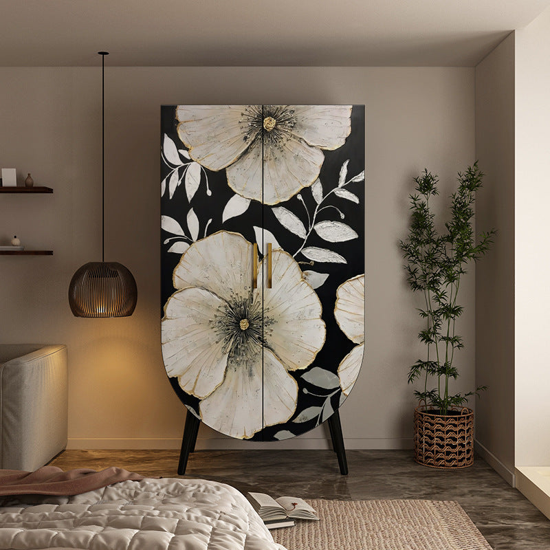 Introduce a piece of artistic heritage and practical organization with this exquisite traditional vintage solid wood storage cabinet. The timeless rectangular silhouette is crafted from premium solid wood, guaranteeing heirloom quality and long-lasting durability. The structure is softened by smooth rounded edges and finished in a classic, bold black, providing a stunning backdrop for the cabinet's defining feature: captivating artistic painted doors.