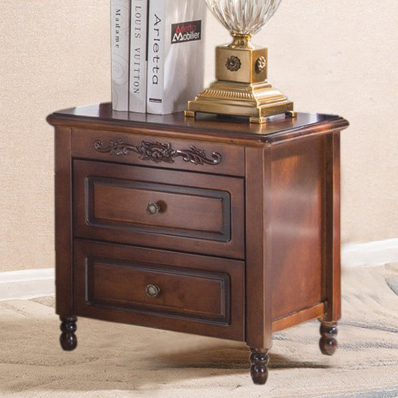 Evoke the charm of the countryside with this traditional rustic nightstand, a piece defined by its timeless craftsmanship. Expertly built from premium solid rubberwood with reinforced engineered wood panels, it offers a robust and stable structure designed for longevity. Two spacious drawers provide reliable bedside storage, while the softly rounded edges add a layer of safety and refinement. Available in rich chestnut, deep walnut, and elegant ivory white, it is the perfect anchor for a classic American country-style bedroom.