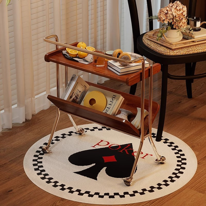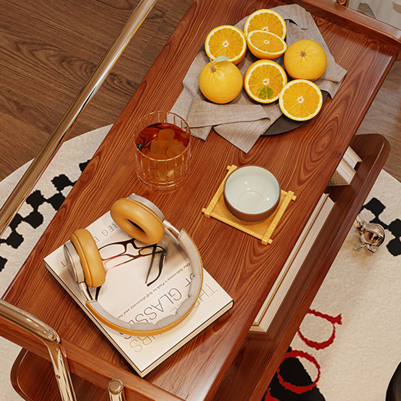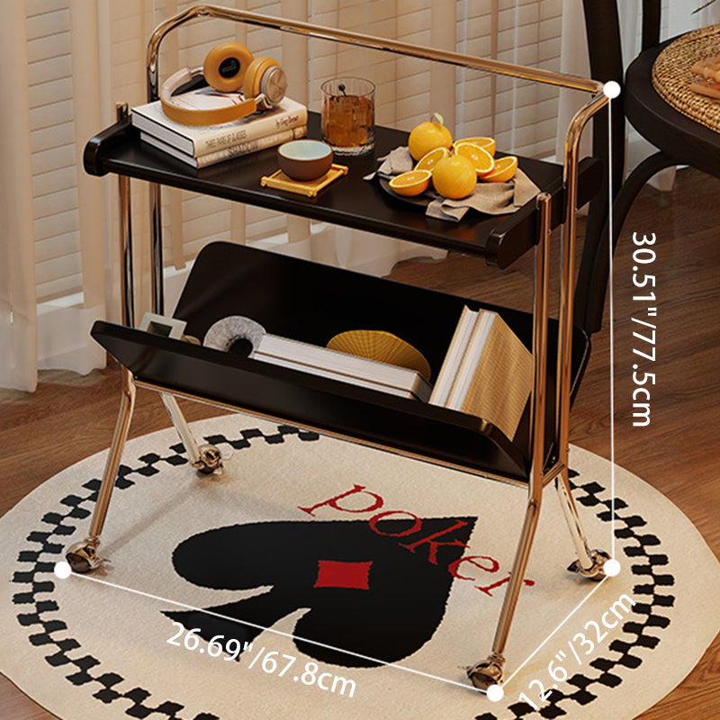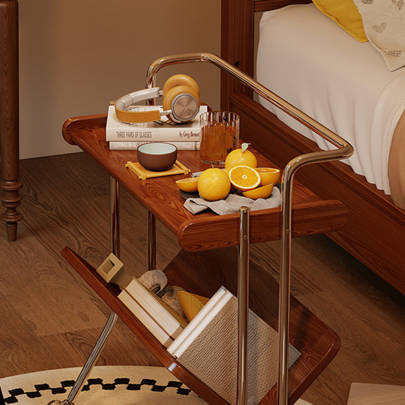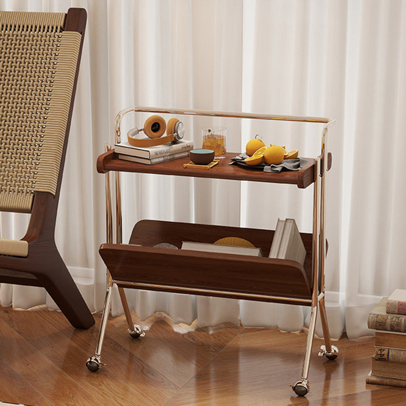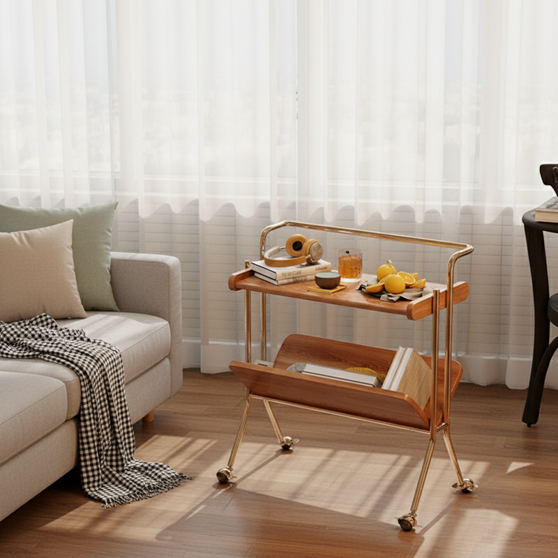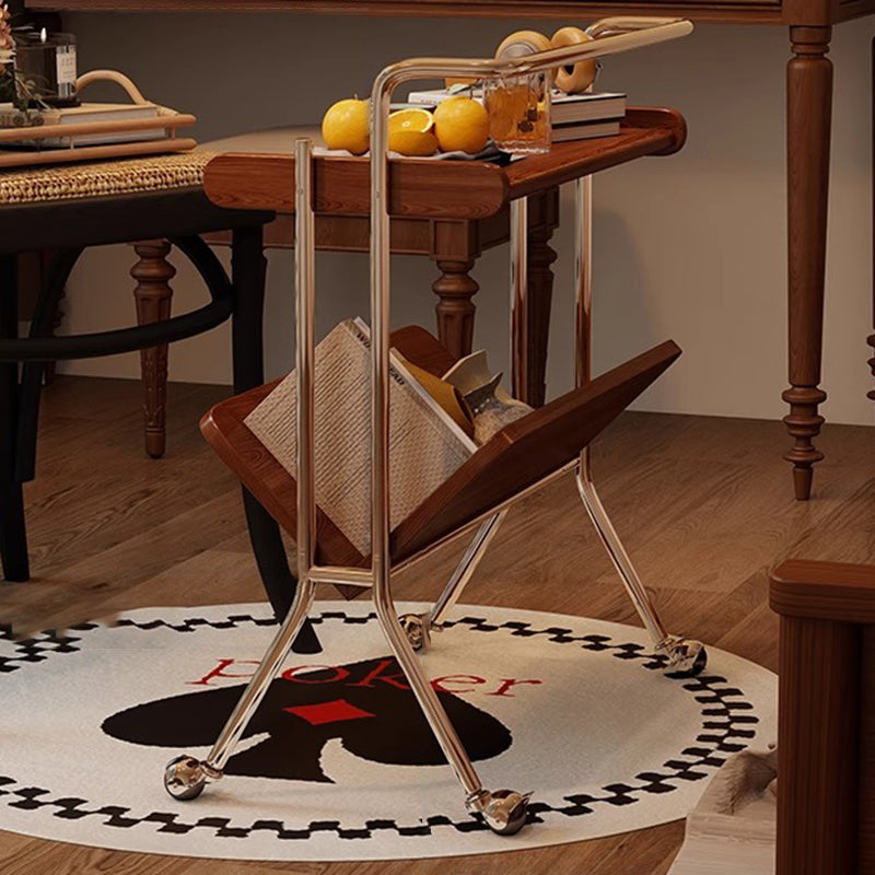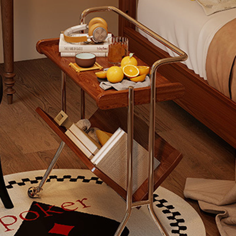 This vintage-style side table is crafted from solid rubberwood with stainless steel accents, featuring a rectangular 2-tier design that adds practical storage without taking up space. Available in walnut, cherry, black, and natural wood finishes, it includes a stable structure, smooth multi-directional caster wheels for easy mobility, and double-layer shelving ideal for living room essentials.