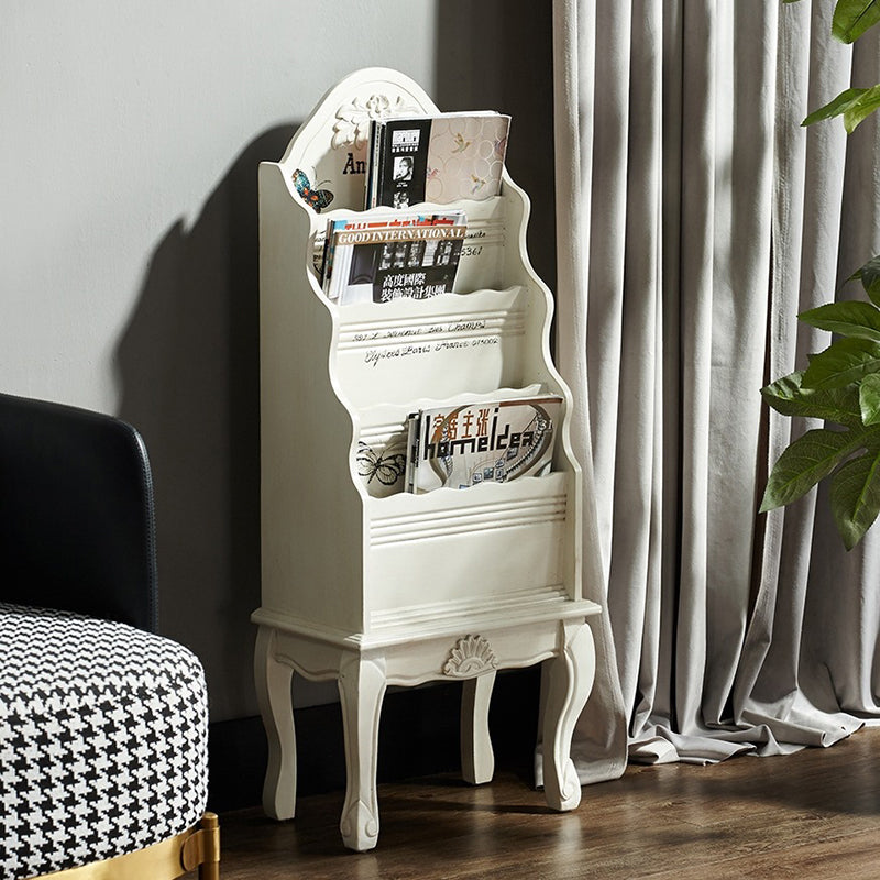 Built for durability and style, this solid wood bookshelf offers exceptional storage capacity for your workspace. Its vintage traditional design is complemented by a beautifully carved 3D exterior and a robust structure. With four spacious shelves, you gain ample, multi-layer display space to neatly organize everything from reference books to daily office supplies. Select the perfect hue for your room: White, Cream Yellow, or Blue.