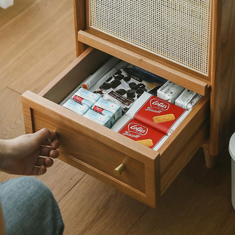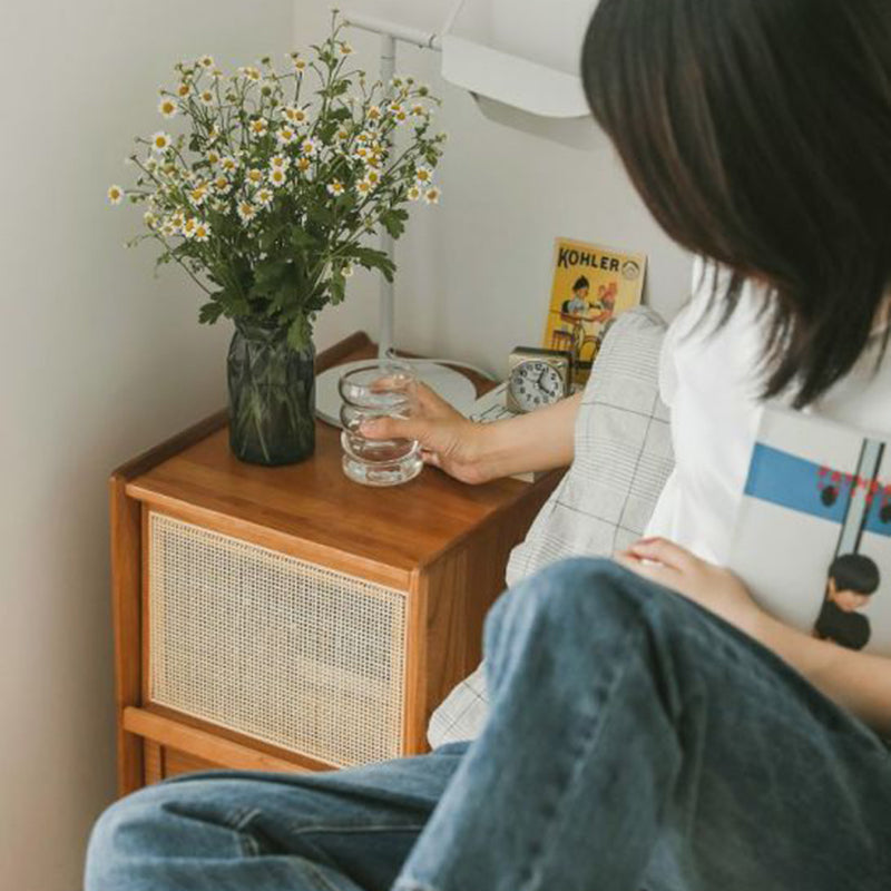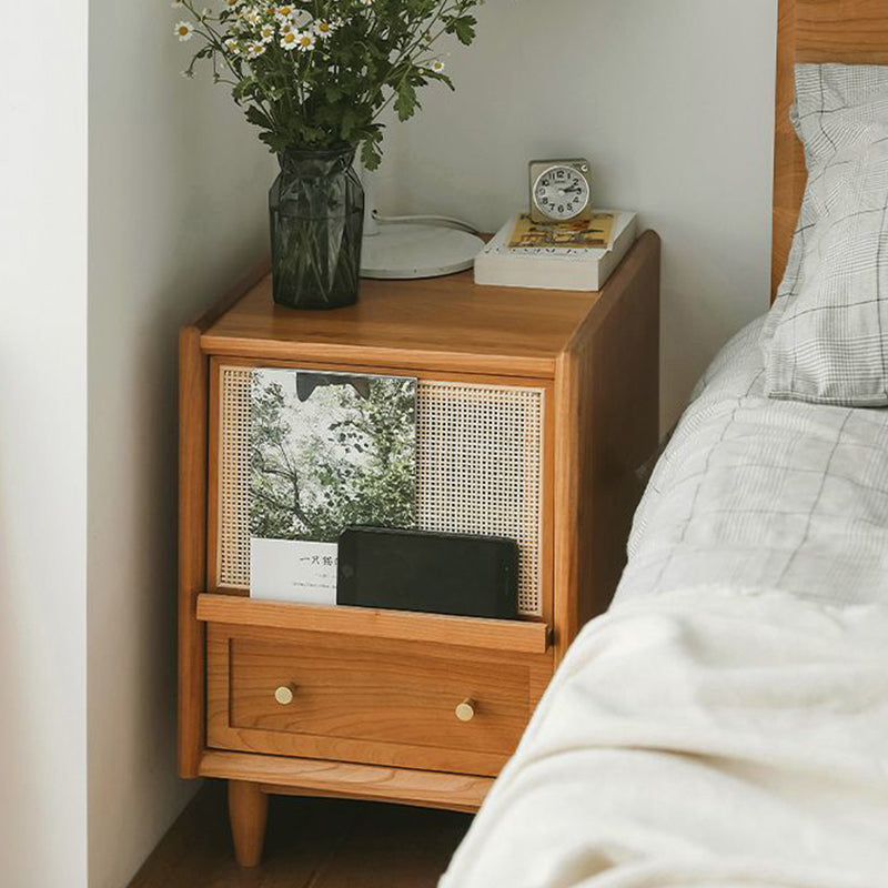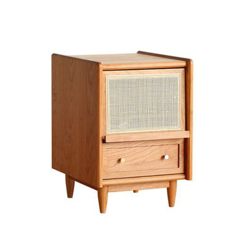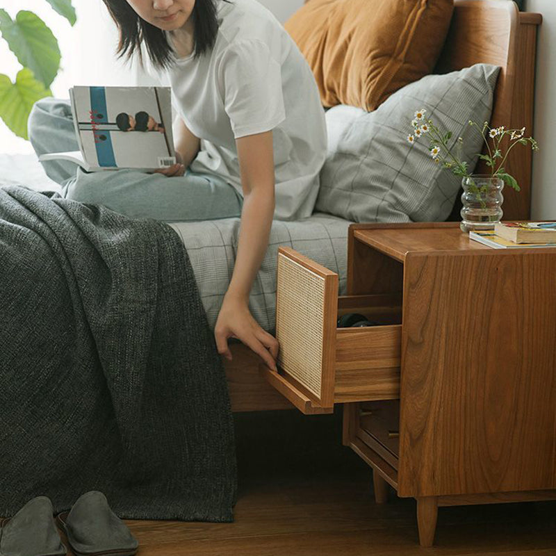 Bring a touch of organic elegance to your bedroom with this vintage-style solid wood nightstand, distinguished by its exquisite rattan-accented design and timeless craftsmanship. Engineered for both beauty and utility, it features two smooth-gliding drawers that provide practical storage for all your nighttime essentials. Available in natural wood, cherry, and walnut finishes, this sturdy bedside solution offers a classic aesthetic that harmonizes perfectly with any decor while ensuring long-lasting durability and organization.