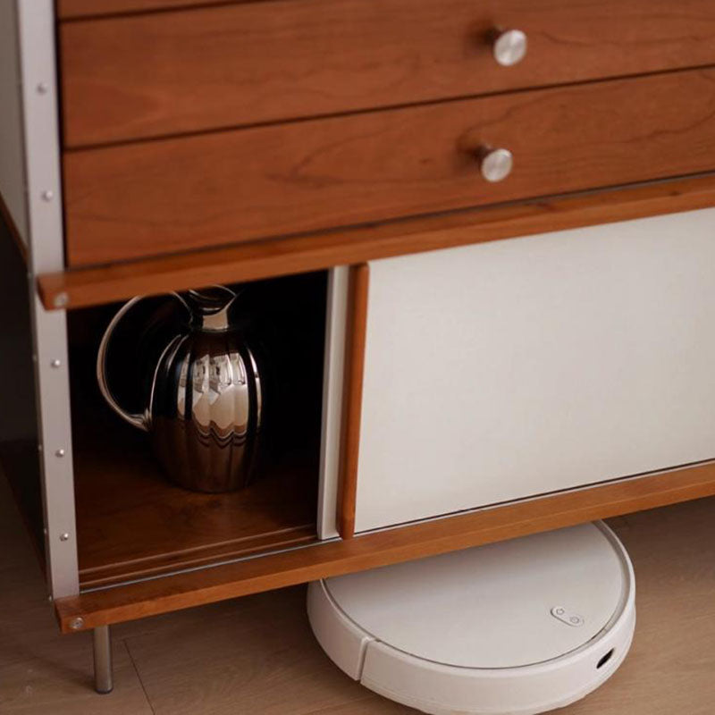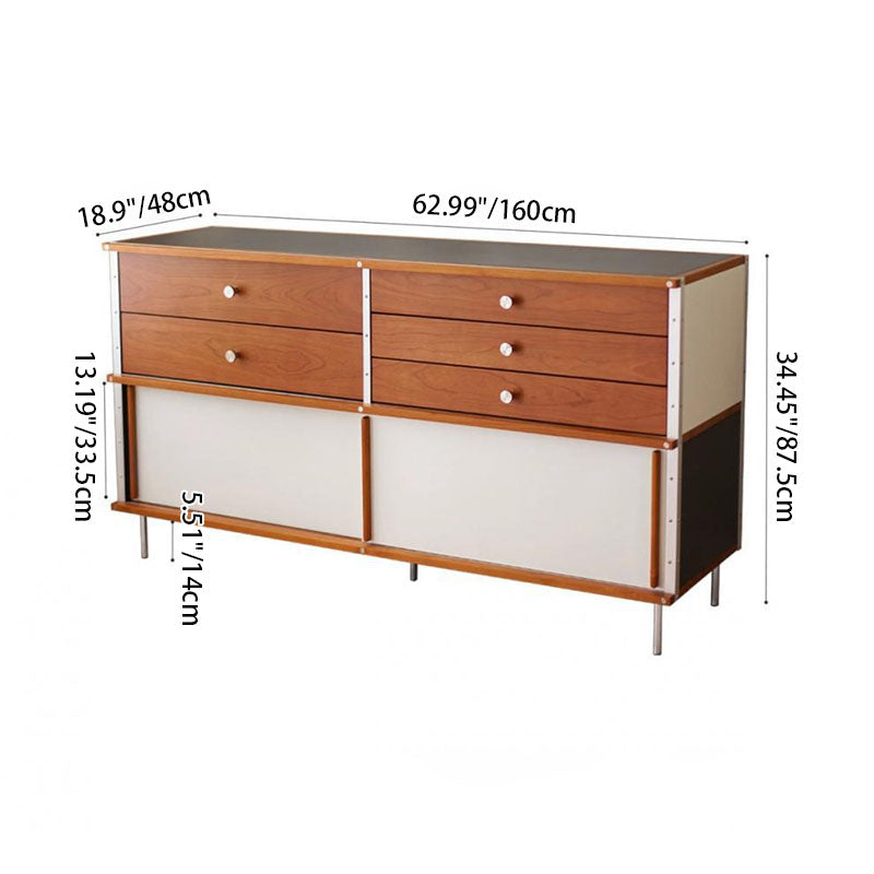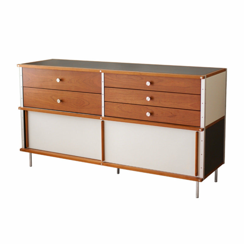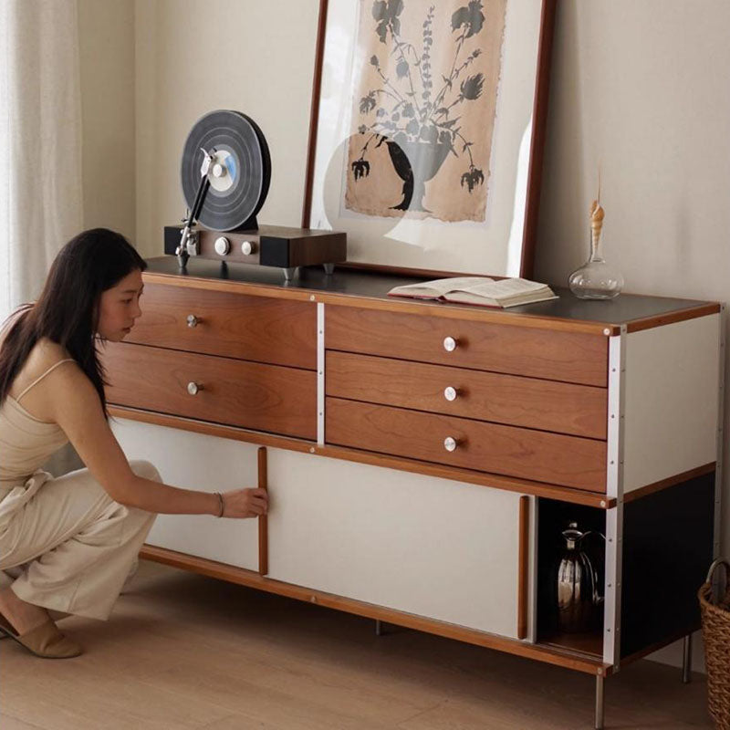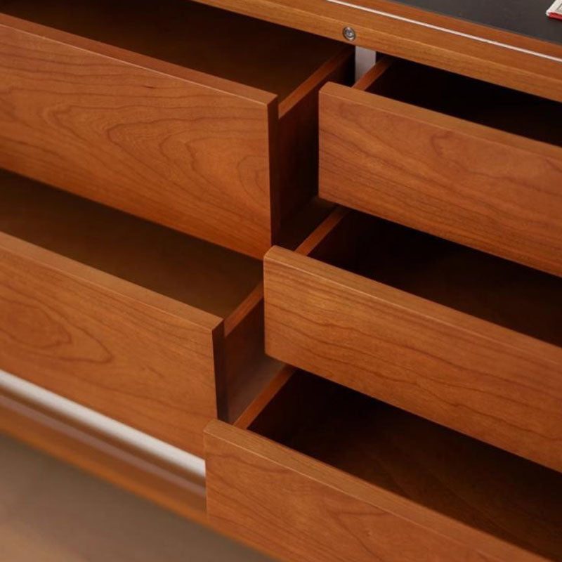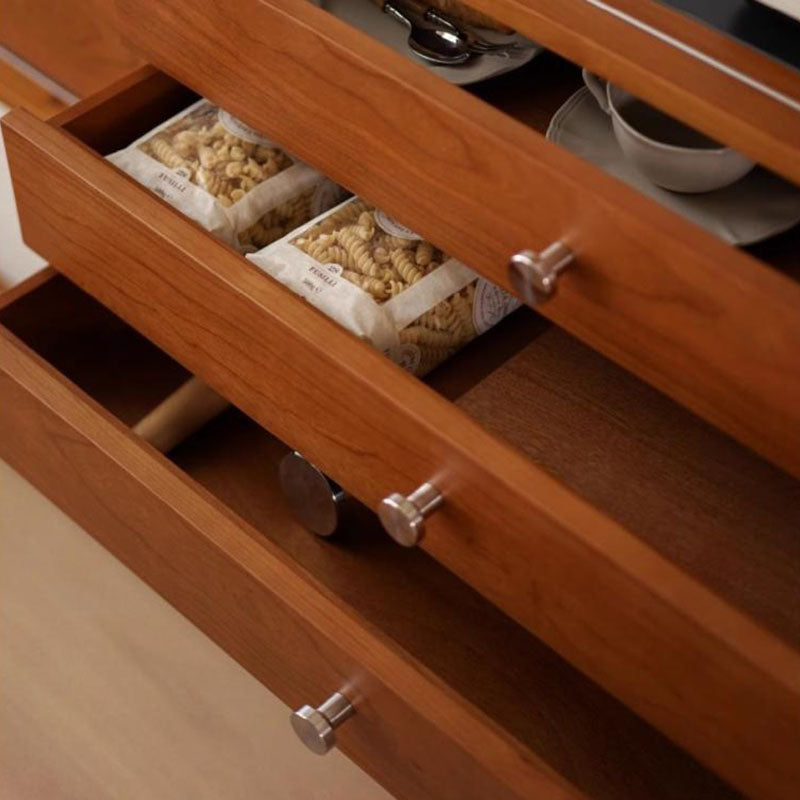 This piece is the ultimate solution for organized living, offering extensive storage capacity. It includes five spacious drawers for tidy storage of silverware and linens, and a convenient smooth sliding door cabinet perfect for larger tableware and kitchen essentials. For those who value sturdy craftsmanship and a blend of refined style and high-capacity function, this sideboard is the ideal investment.