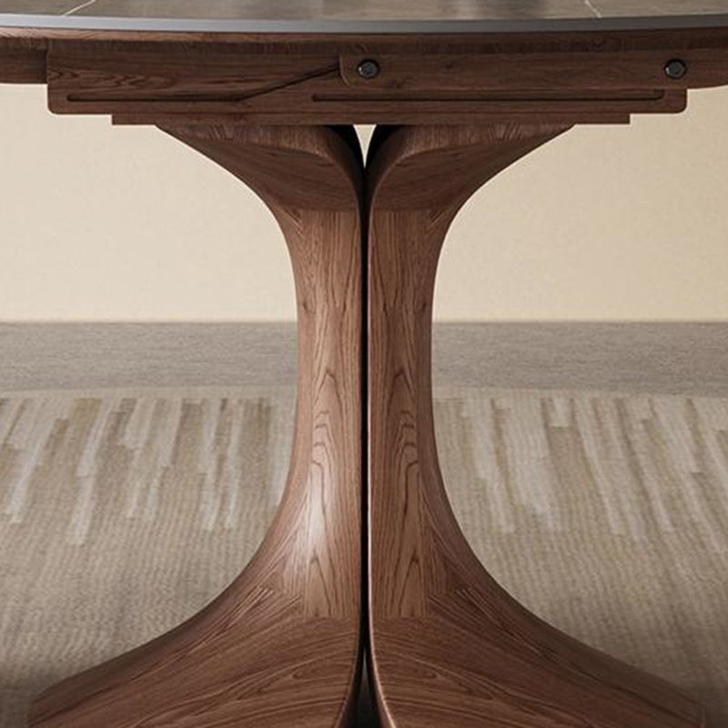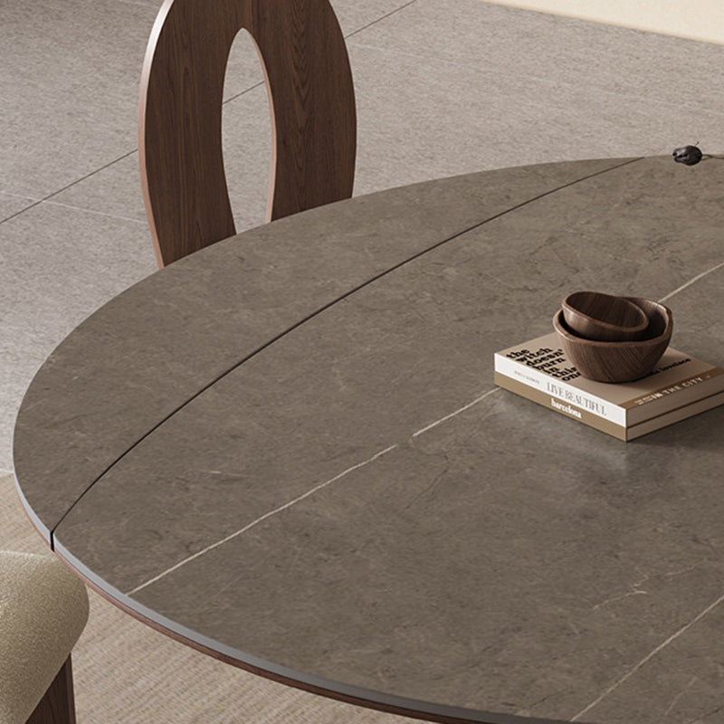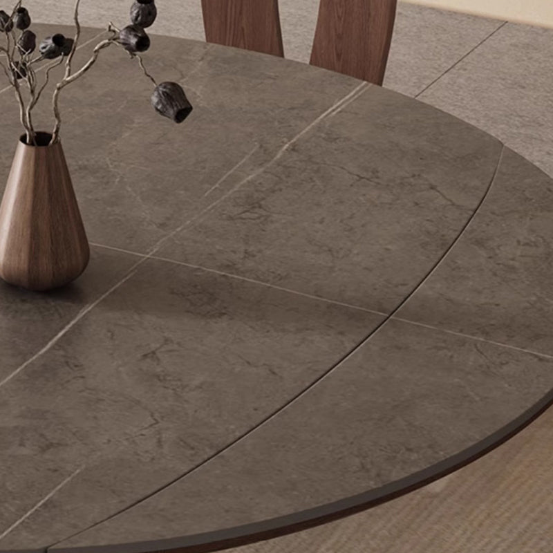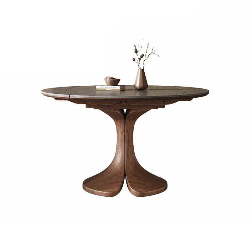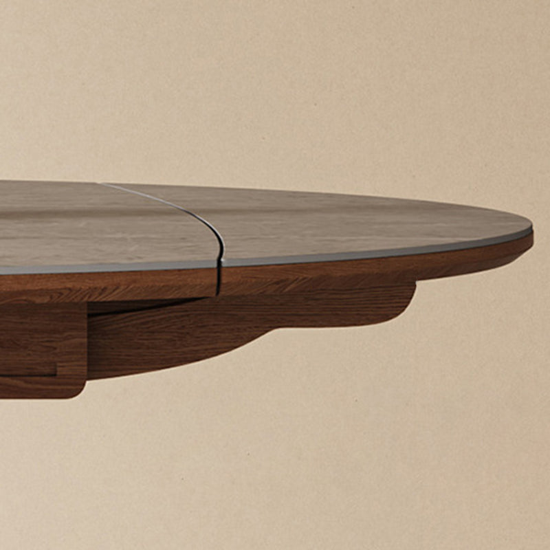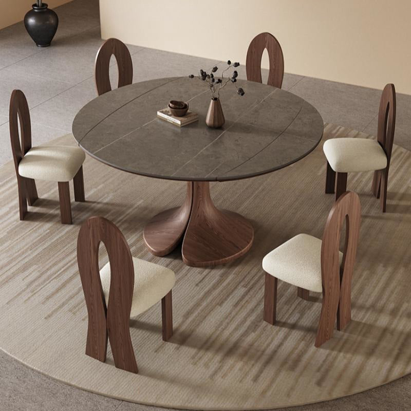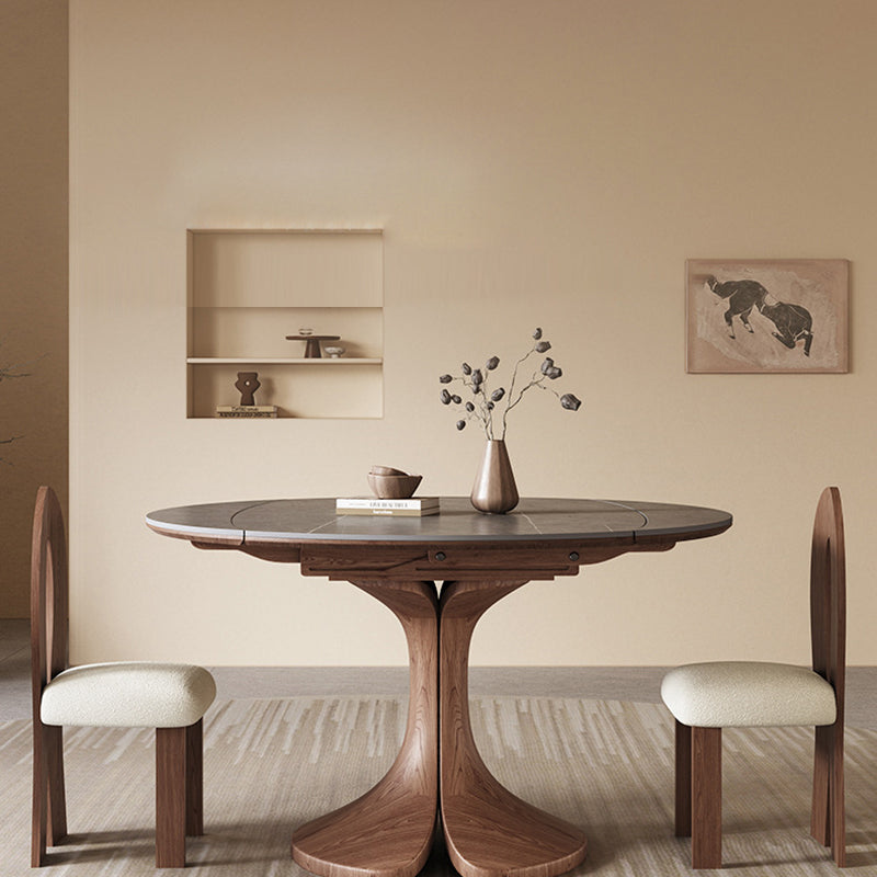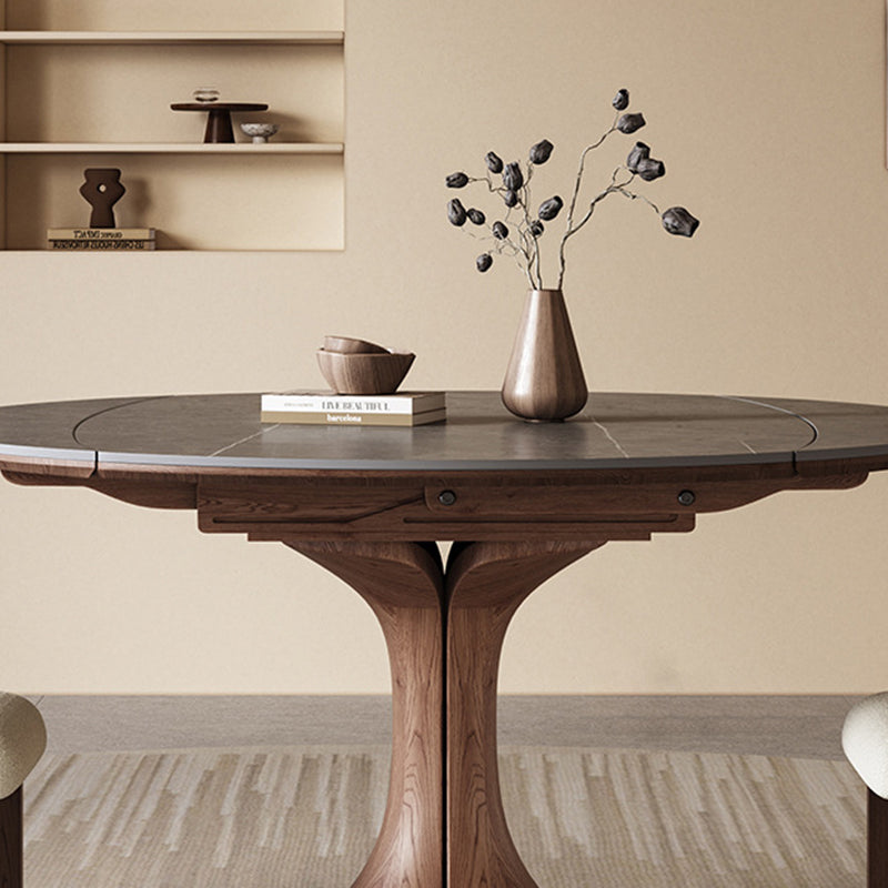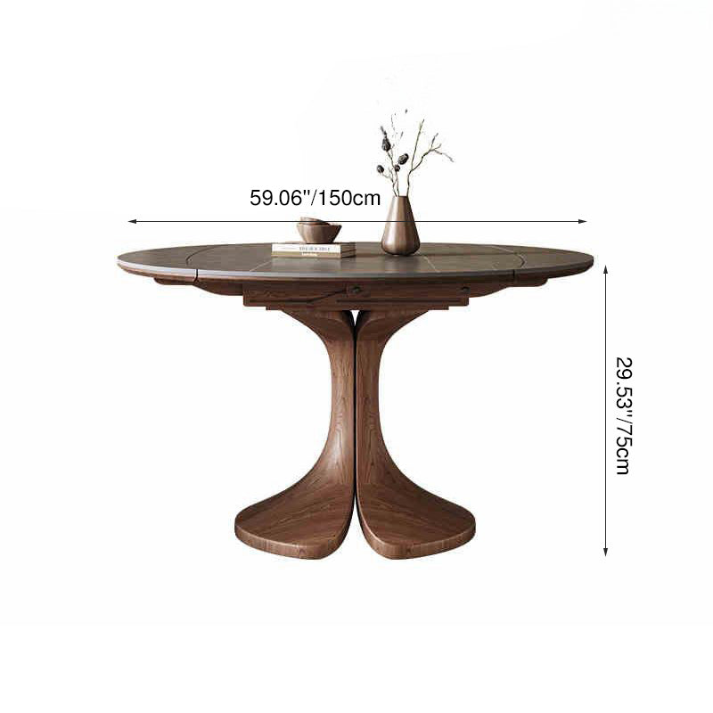 This Traditional Vintage round dining table features a durable sintered stone tabletop paired with a solid wood base in a warm walnut finish. Designed with an extendable and foldable structure, it easily adapts from a compact round table to a spacious dining surface, making it ideal for kitchens and dining rooms. The wide tabletop and stable pedestal base offer both everyday practicality and timeless elegance for modern homes.