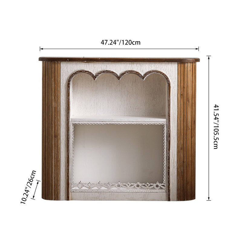 Designed for the multi-functional home, this mantel transcends traditional decor by incorporating a genius two-tier storage system. The expansive top surface serves as a gallery for statement mirrors and heirlooms, while the integrated shelving provides a discreet home for books, media, or seasonal accents. This dual-purpose storage solution is the ultimate anchor for entryway styling or living room focal points, blending "Old World" charm with "New World" utility. Optimized for North American homeowners searching for solid fir wood mantels, vintage fireplace surrounds with storage, rustic hand-carved mantels, and entryway console fireplaces.